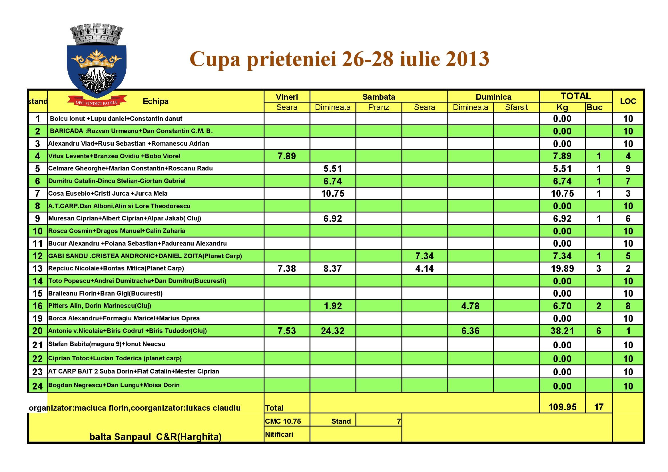 Re: desfasurare CUPA PRIETENIEI-26-28 iulie. 2013