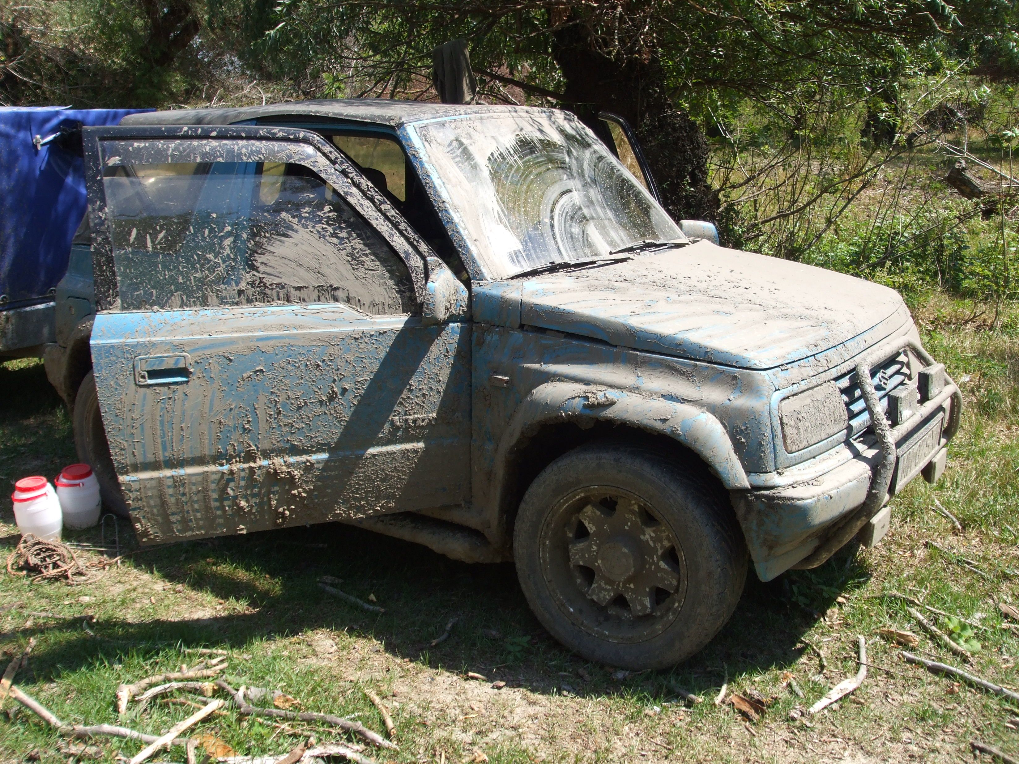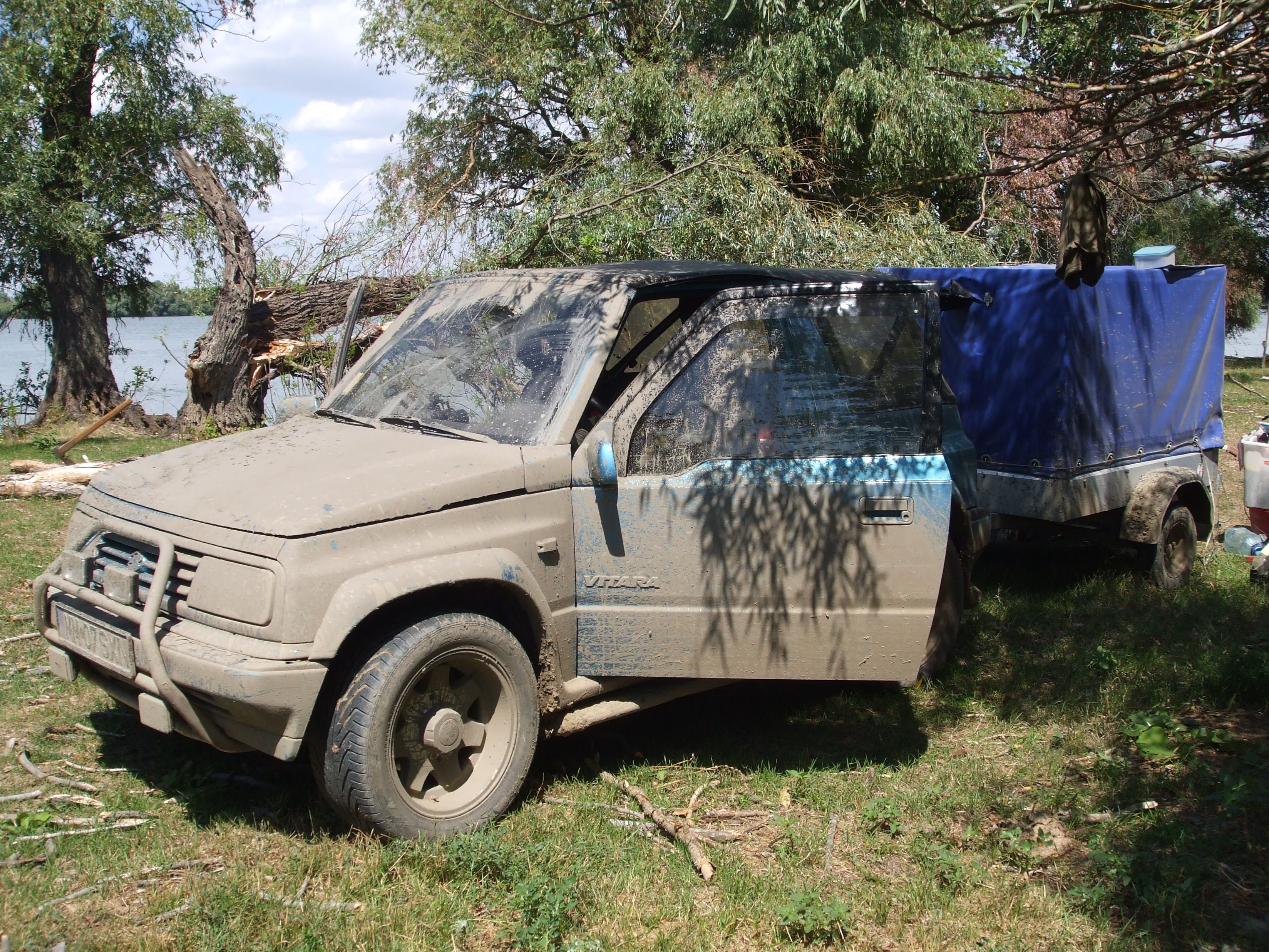 Am luat-o pe drum de pamant (drumul de piatra iti scoate toate plombele). "Hai ca ajungem devreme" imi ziceam ... dar pe la jumatatea drumului isi baga Michidutza coada. Cu o zi in urma plouase in zona respectiva si s-au format niste mici mlastini. Le ocoleam eu pe taluz, dar una mi-a pus capac. Ce s-a intamplat ... inaintea mea trecuse un camion de ala cu patru axe si a stropit cu noroi taluzul. Am crezut ca trec fara sa cuplez fatza, dar ... pe la mijloc, spatele cu remorca ... zdup in mijlocul porcariei. Porcaria ... cam pana la usi. Ii zic lu' Iany : "Am belit-o!". Si am tot belit-o vreo ora, ba in fata, ba in spate ... degeaba, eram ca pe sapun.