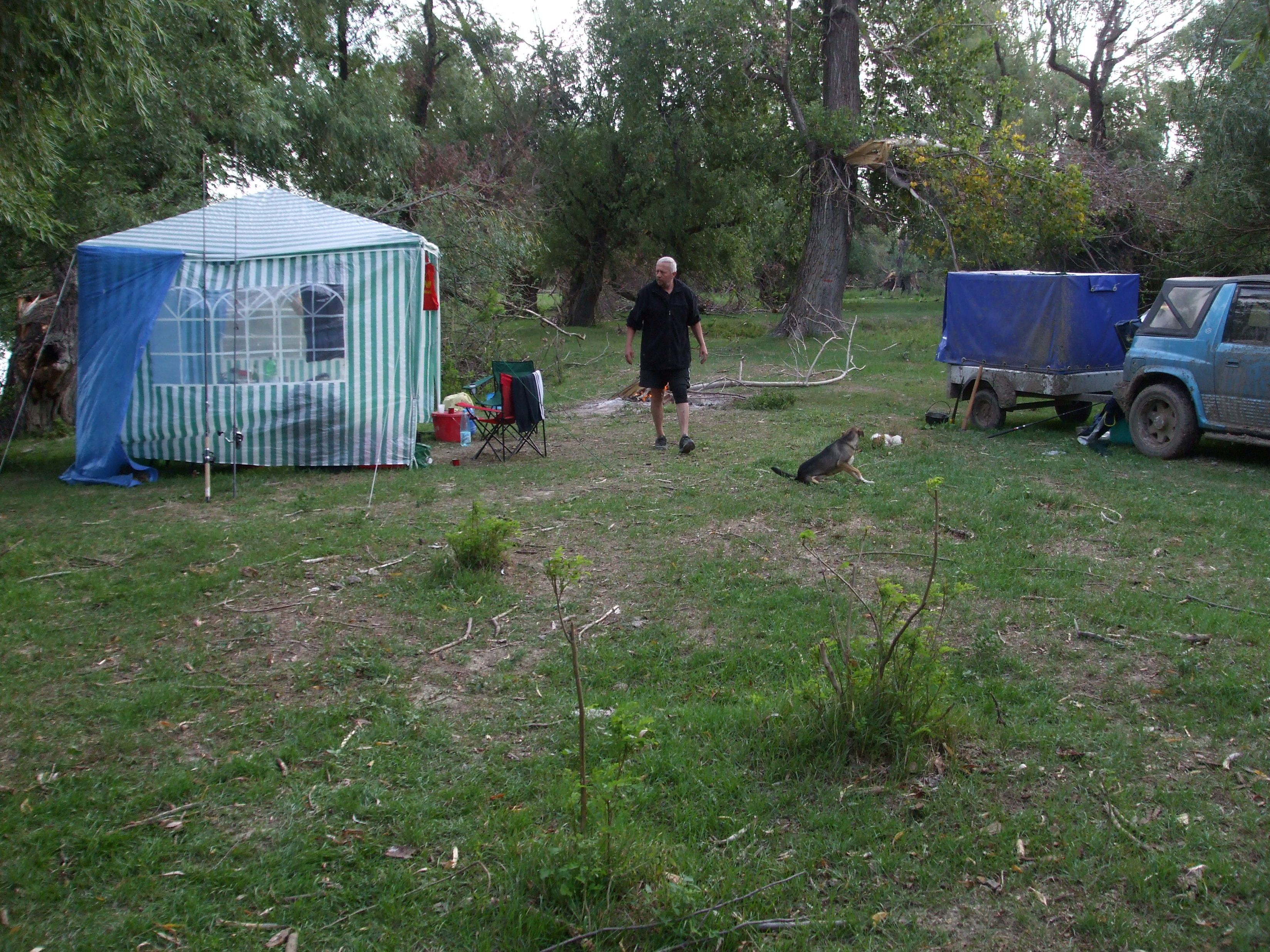 Deci, in primul rand am descarcat arsenalul, apoi am instalat pavilionul cu toata logistica pozitionata in mod precis ... adica paturi, masa, sculele, butoiul cu zarzavaturi la umbra, ... apa, berile si palinca, idem