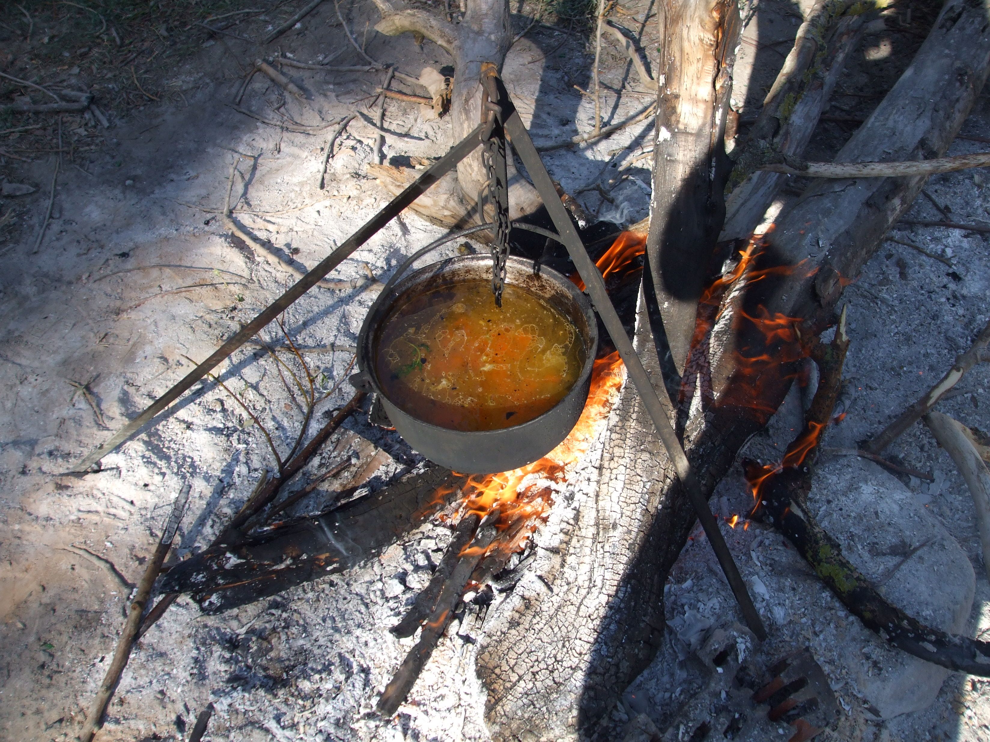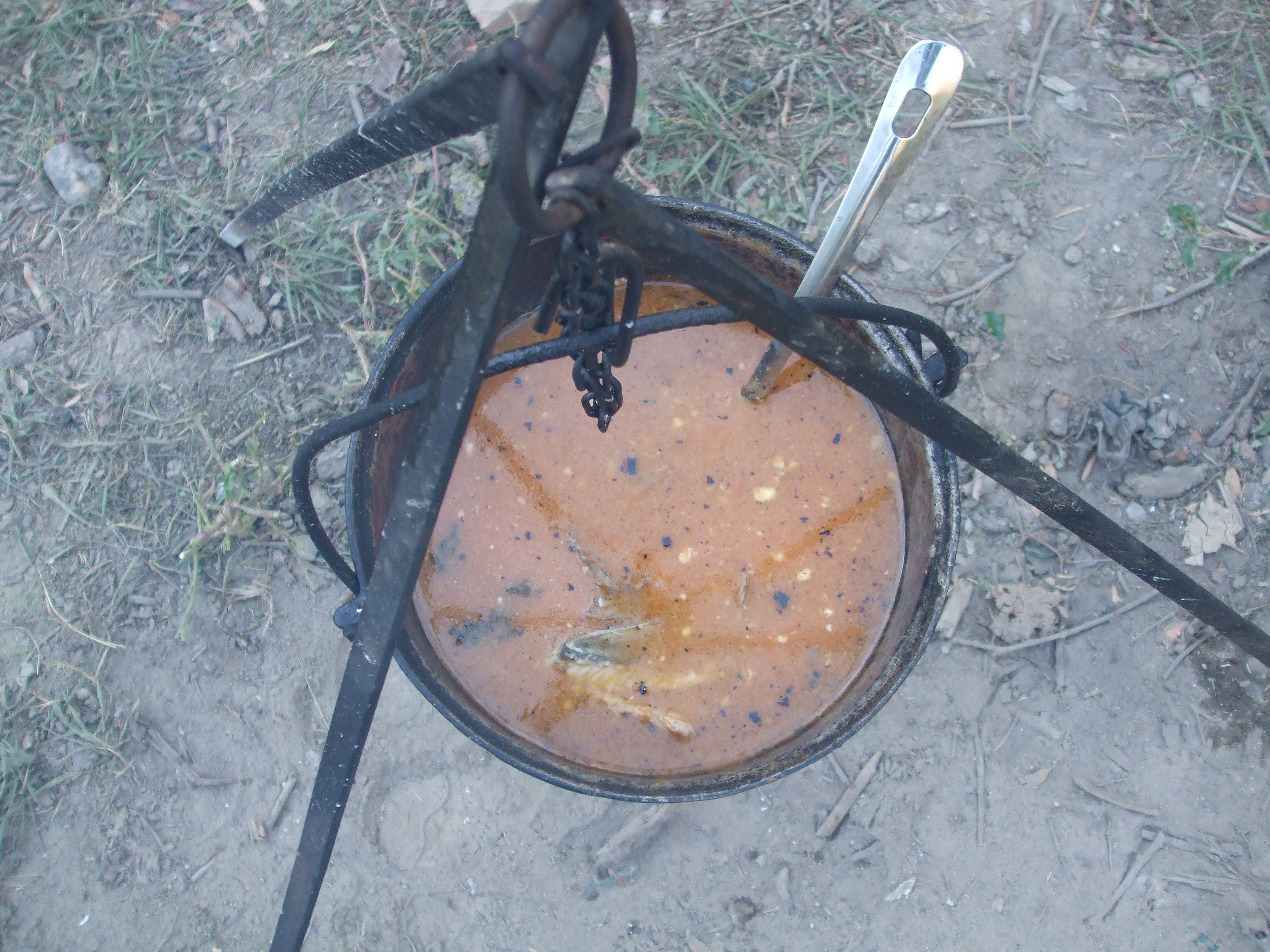 Ei, ca nu bine zbura pasarica de pe batz, ca si pica primul crapcean. Si cum era numai potrivit pentru o ciorbita la ceaun ... l-am executat in faptul serii si am bifat inca un punct din lista cu obiective. Deci acea ciorbita la ceaun si foc de lemne, cu ceapa calita, zarzavat taiat marunt, cubulete de cartofi, bulion de rosii, smantana la alegere si ... inevitabilul si "parfumatul" crap de Dunare. Ma tot intrebam cat ar costa asa ceva la un restaurant de 5 stele, cand deasupra, pe bolta cerului, incepea sa licareasca o intreaga galaxie ...
