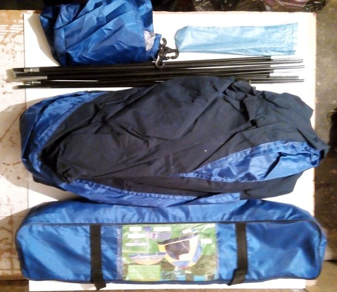 Dimensiuni 2m x1.5m - 2 tronsoane fibra de sticla, geanta de transport, 4 cuie de ancorare. Culoare albastru.