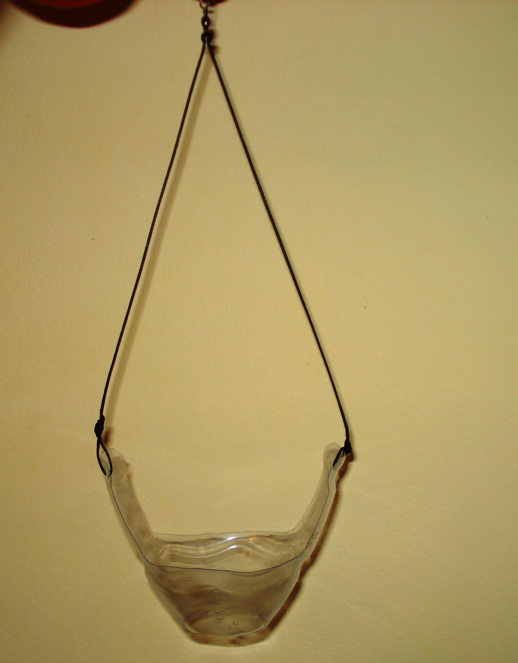 O metoda simpla si la indemana oricui de aruncat nada la distanta fara mare cheltuiala,practic te costa 50 bani costul unei agrafe cu vartej si atat,fata de alea din comert de 30-40 lei.Iti trebuie un pet gol de 2,5 litri de preferat apa minerala Perla Harghitei si se procedeaza astfel: se decupeaza filetul de la dop apoi cu un foarfece se decupeaza forma ce o vezi in poza.se dau 2 gauri cu un perforator pe mijlocul aripelor si se leaga cu un fir textil mai gros(0,4).Iti trebuie o lanseta de 3,5 metri nu neaparat de firma dar cu rezistenta cam de 250 gr cu varf gros,o mulineta mai solida si nu neaparat noua ,100 metri de fir monofilament de 0.4 pe tambur de care sa legi un inaintas de 6 metri fir textil de 0,3 si cam atat.bulgarii de nada se fac de marimea unui mar potrivit dar cel mai bine vezi facand proba pe balta.incercati si o sa vedeti efect maxim cu bani putini.Fir intins