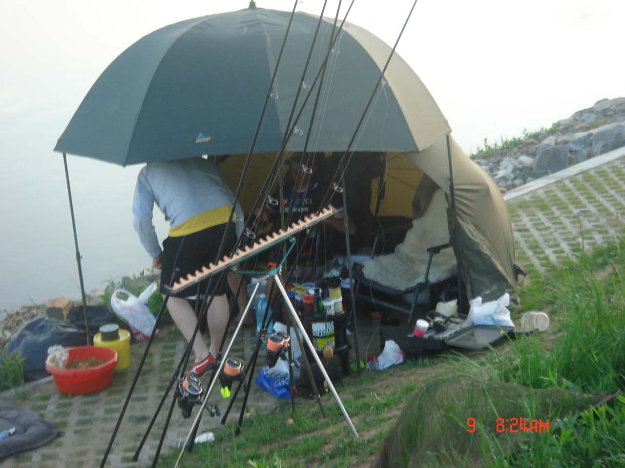 Ca sa raspund unor ascultatori (care m-au intrebat ieri ce reprezinta stilul englezesc de pescuit) in UK majoritatea lacurilor au foarte multa vegetatie sau mal pe fund; pentru a contracara acest efect englezii folosesc monturi total flotante sau aproape flotante ca sa poata ridica momeala deasupra malului, vegetatiei, etc..........ei bine asa pescuim si noi si asa am avut rezultate. Mai multe va voi spune dupa terminarea concursului (detalii, arome folosite, etc..).