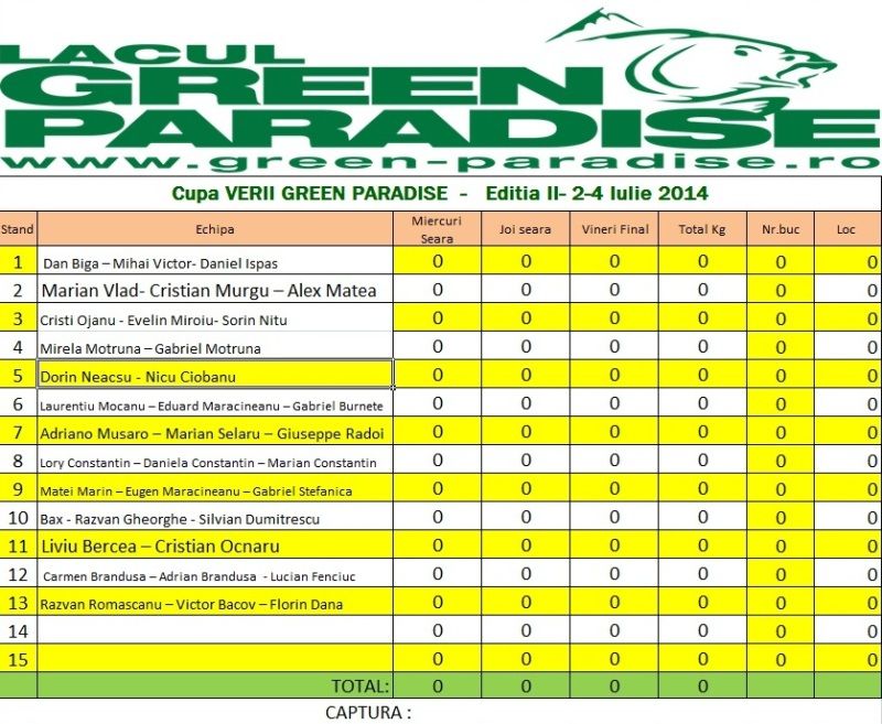 Re: Cupa Verii Lacul Green Paradise 2-4 Iulie 2014