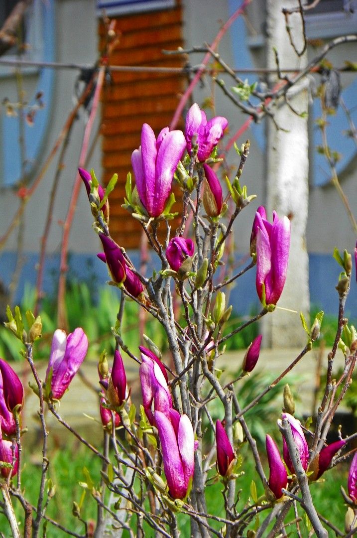 Am la munca o magnolie pe care o astept mereu sa infloreasca (am mai pus poze cu ea pe topicul asta, acum 2 ani) ... e frumoasa foc, dar fiind asa "stufoasa", mi-e greu s-o incadrez bine ... mai am cateva poze cu ea de anul trecut :