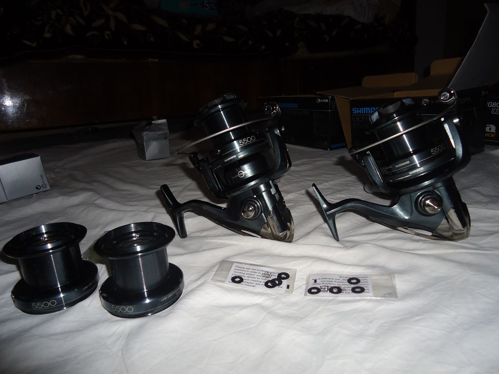 2 mulinete okuma long bow 50 noi cumparate in februarie 2013 umplute cu fir de 0,5 de la trabuco 130 lei bucata
