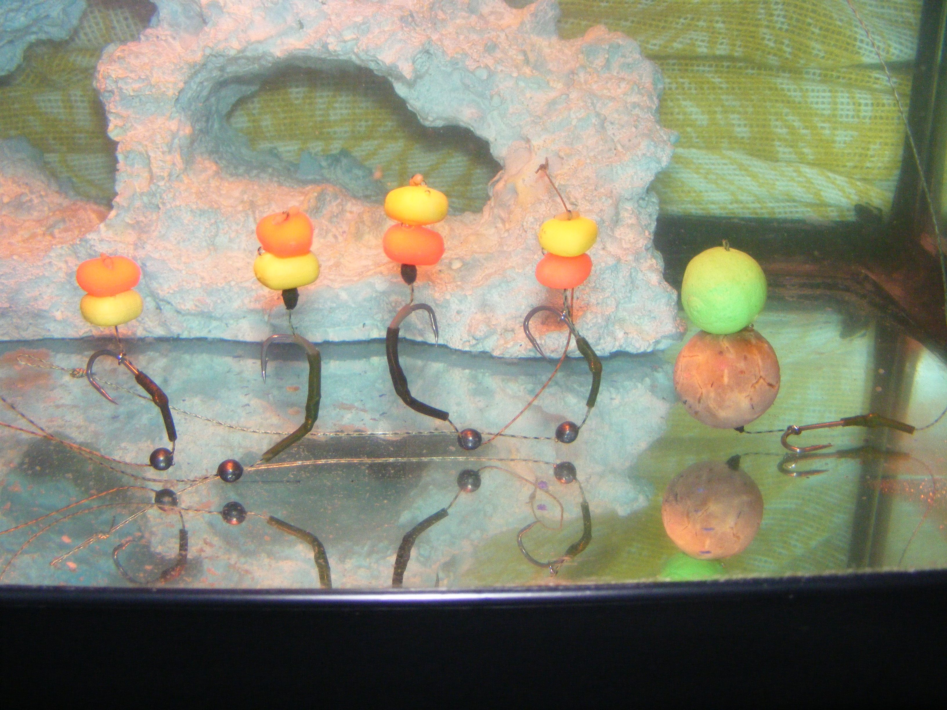 Lungimea rigului este de 10 cm la cele cu plastice iar 20 cm la snowman.Pentru ca prezentarea momeli sa fie cat mai naturala folosesc un saculet solubil la monturile cu plumb si infig acul in nada la cel cu momitor.