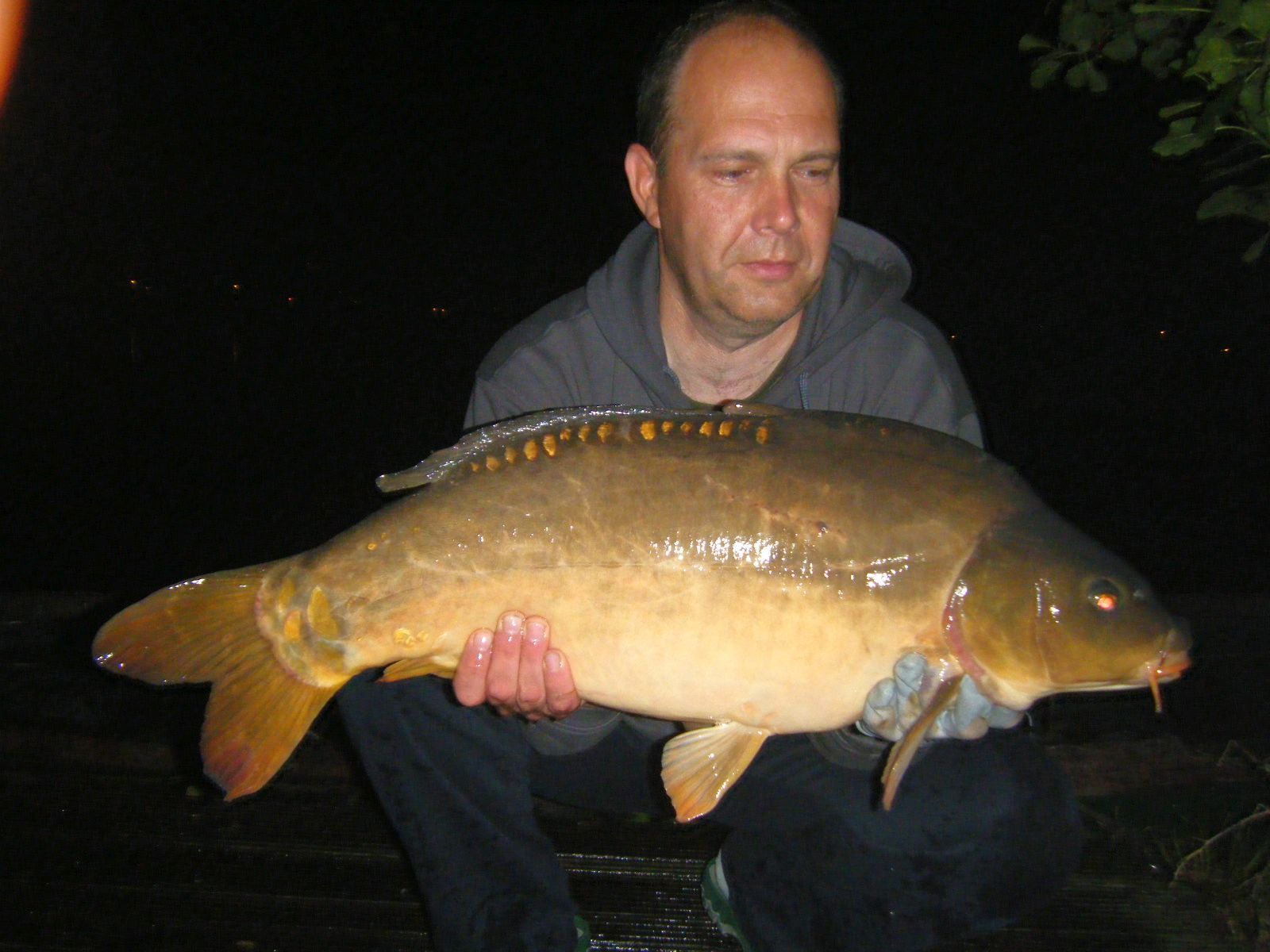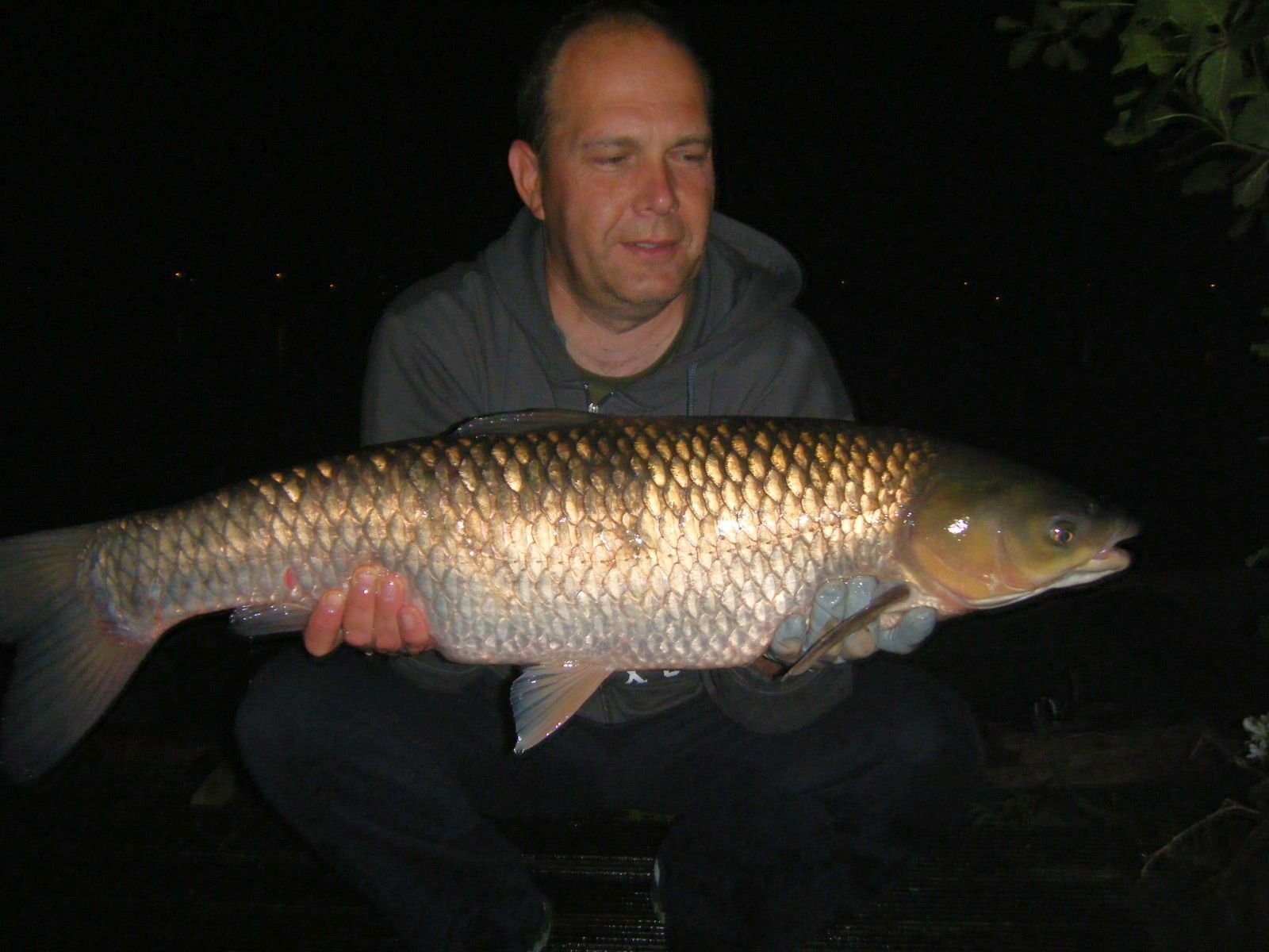 In prima zi de pescuit a plouat iar eu nu am prins decat ..8 platici gigant. Amicul a luat 3 crapi, cel mai mare de 10.5 kg. Am folosit atat bile popuite (Spicy Tuna, 1016, Ananas)cat si Tiger Nuts. A doua zi, dupa ce ploaia a stat, am schimbat tactica: am bagat bile de 24mm de la Nash, scopex-squid-robin red, popup de 20mm sculptat. Am pus sac PVA cu bile de toate natiile si aromele, sfaramante, si am luat barca si le-am plantat la 50 cm de nuferii situati cam la 150 m distanta de stand. Pe o lanseta am pus 3 boabe de cauciuc si saculet PVA cu diverse sparturi si am dus-o langa stuf, la vreo 130 m dreapta. Pe la miezul noptii a intrat cel de 14,5 kg, apoi si ceilalti crapi, pe rand, pana pe la ora 4, cand a venit si domnul amur, cu care chiar nu asteptam sa ma intalnesc
