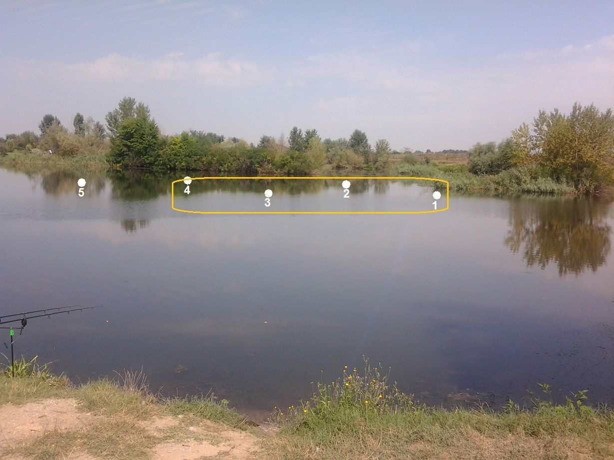 Eu as pune 2 lansete în faţa pâlcului de stuf de la poziţia 1 şi 2 lansete între poziţiile 3-4 (una la pâlcul din dreapta, una lângă copacul din stânga)!