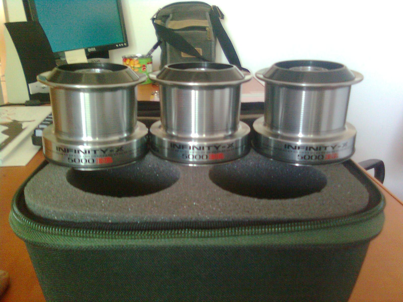 schimb 3 tamburi daiwa infinity X BR marimea 5000 (impecabili) + borseta daiwa infinity (noua)