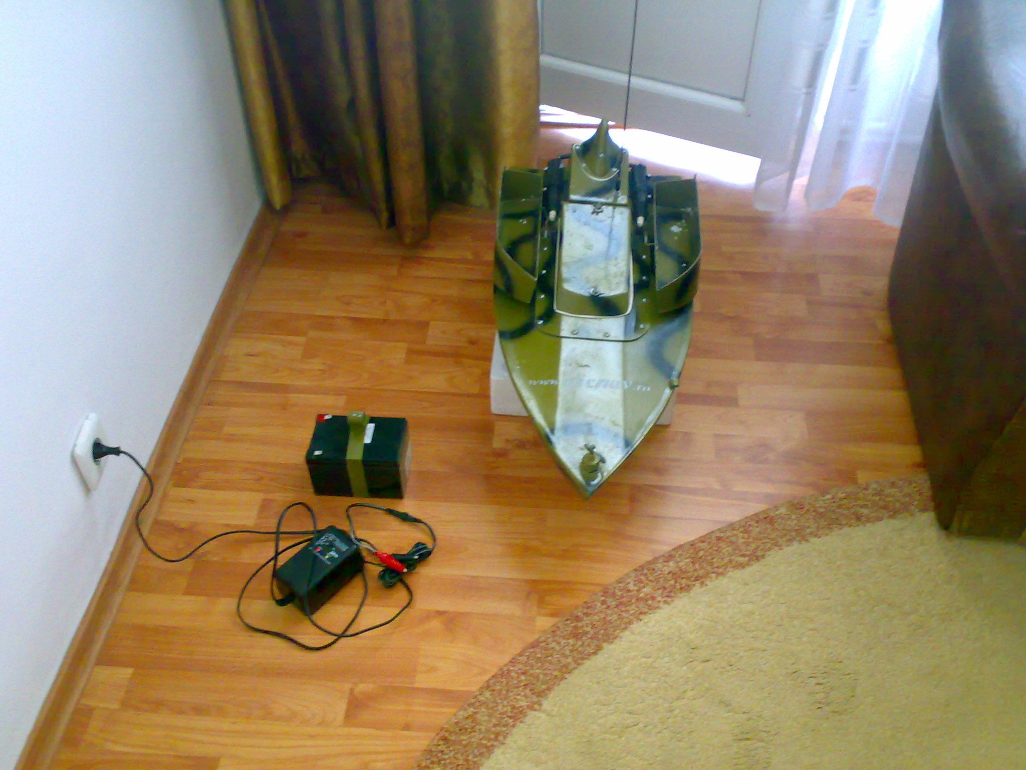 Propulsia navomodeluli este asigurata de 2 motoare electrice (12 Vcc.) cu 2 elici submersibile protejate impotriva vegetatiei subacvatice. Partea electrica a modelului este alimentata de un acumulator 12 V 14 Ah. Navomodelul mai este prevazut cu sistem de vizualizare pe timp de noapte.