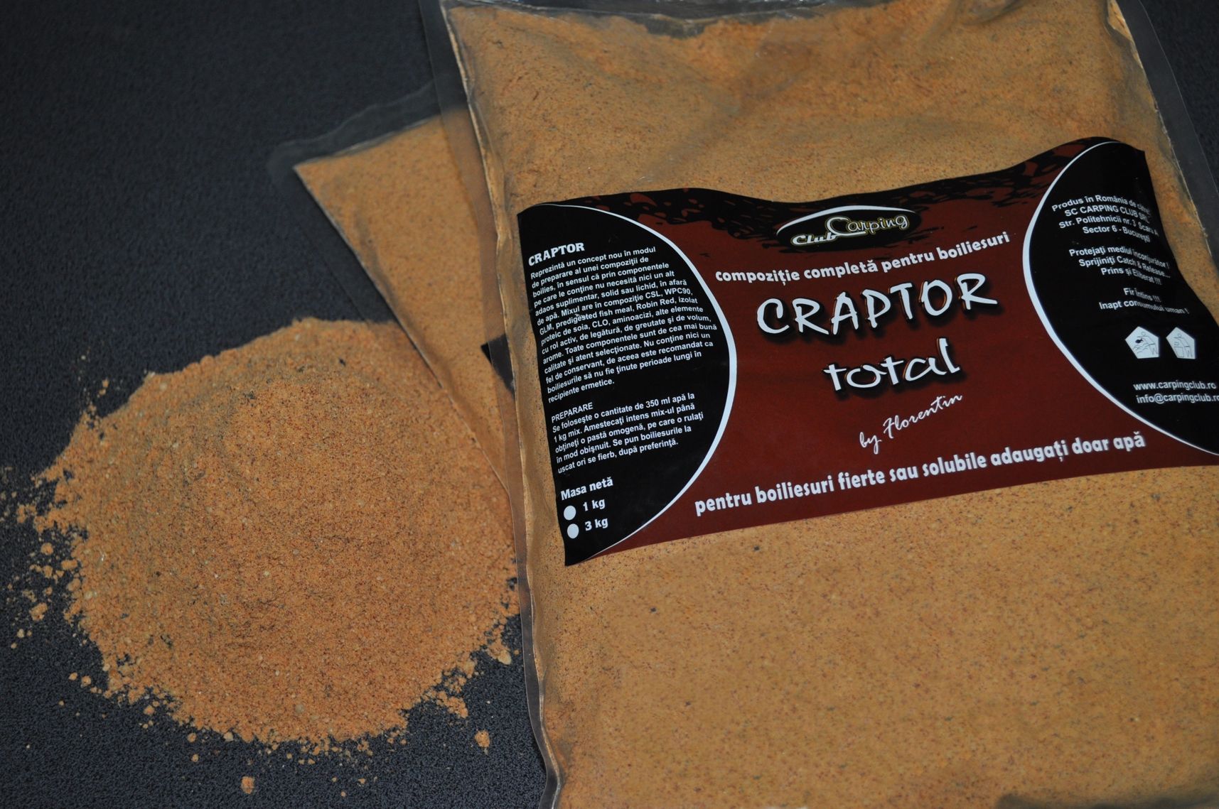 Mixul se numeste Craptor total, denumire data pentru faptul ca formula a fost imbunatatita. De acum nu mai este nevoie de oua pentru boiliesurile fierte. Singurul lucru care se adauga este... apa. Ramane decizia voastra daca le fierbeti sau le uscati ca atare pentru a fi solubile. Am mentinut si lipsa oricarui conservant din compozitie. De fapt, folosirea boiliesurilor Craptor proaspete, atat fierte pe loc cat si uscate de 3-4 zile, va asigura un plus de atractivitate si eficienta.