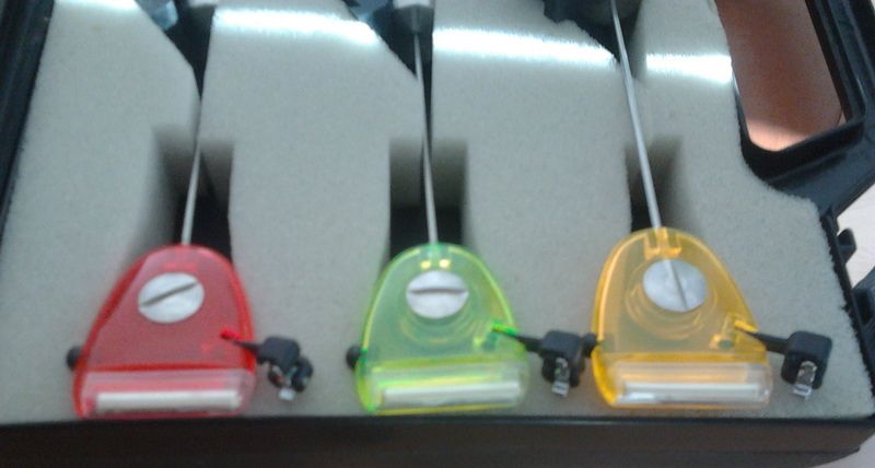 set de 3 fox mk2 swinger(rosu, galben, verde) cu valigeta si izotopi