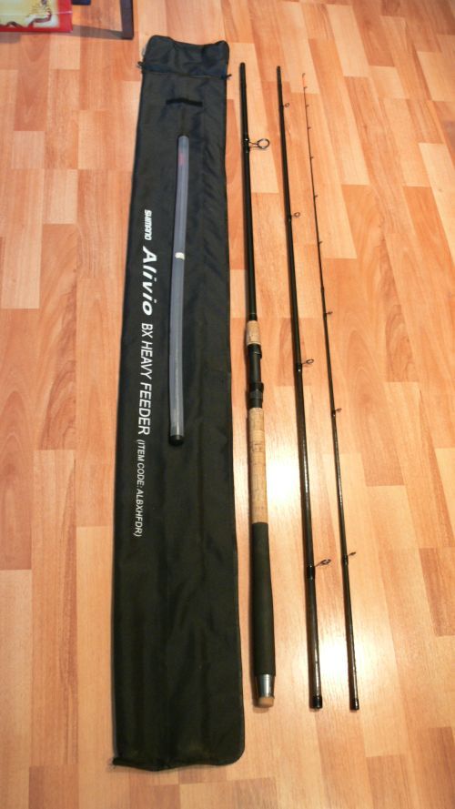Shimano Alivio BX Heavy Feeder 13''- o lanseta foarte draga mie cu care am reusit sa prind capturi considerabile de crapi, fitofagi pe multe dintre baltile din jurul Clujului, precum si in Ungaria si scobari, mrene pe rauri. O lanseta ce cred eu ca nu necesita prezentare, versatila, puternica. Cod ALBXHFDR, tub varfuri cu doua varfuri originale de 2 si 3oz, material carbon XT30, lungime transport 136cm, 311gr greutate, putere aruncare 110grame, husa originala. (stare la fel exceptionala, fara zgarieturi, inele schimbate etc.) Lanseta a fost cumparata de noua in Ungaria, fiind singurul proprietar.