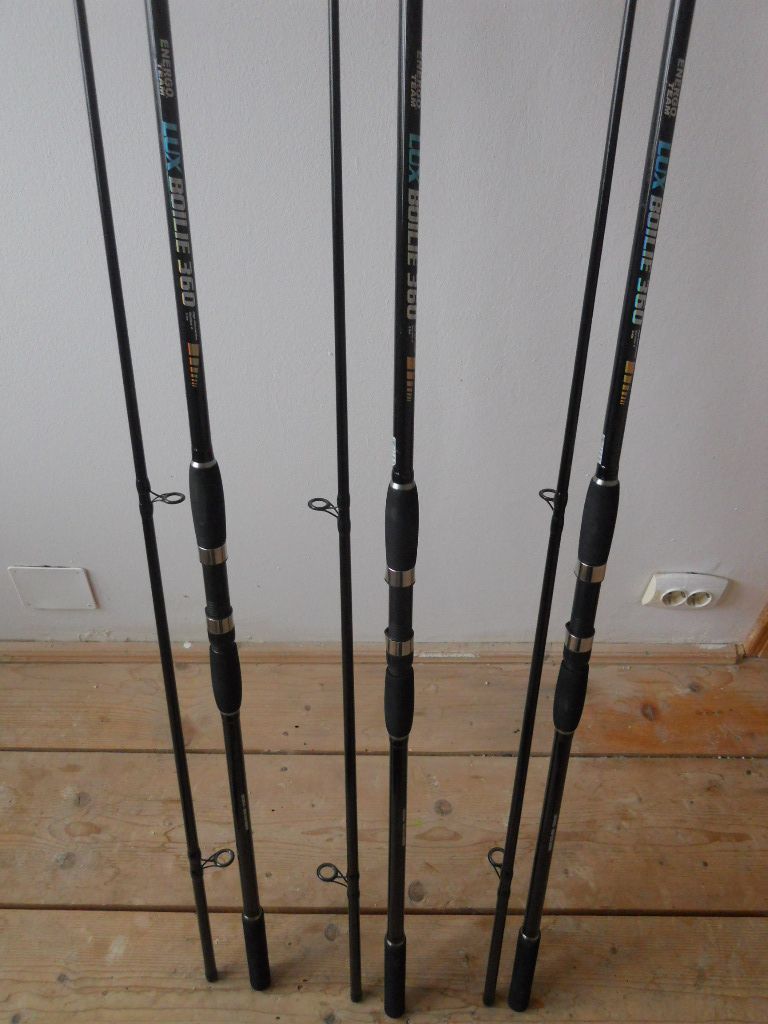 Vand 3 lansete EnergoTeam Lux Boilie din 2 segmente, 3,60m, TC 3 lbs, stare buna, fara zgarieturi sau fisuri, toate inelele originale, pastrate doar in husele lor.