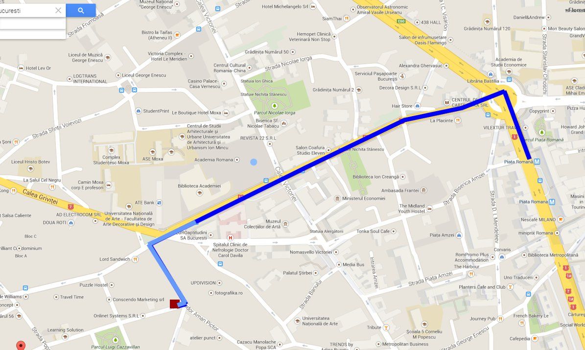 Cu metroul pana la Piata Romana (schimbi la Piata Unirii catre Universitate) si de la Romana mergi o statie cu 168 pana la Calea Grivitei (albastru) iar de acolo pe jos (bleu) sau ca sa nu mai pierzi timpul o iei pe jos de la metrou ca nu e mult.