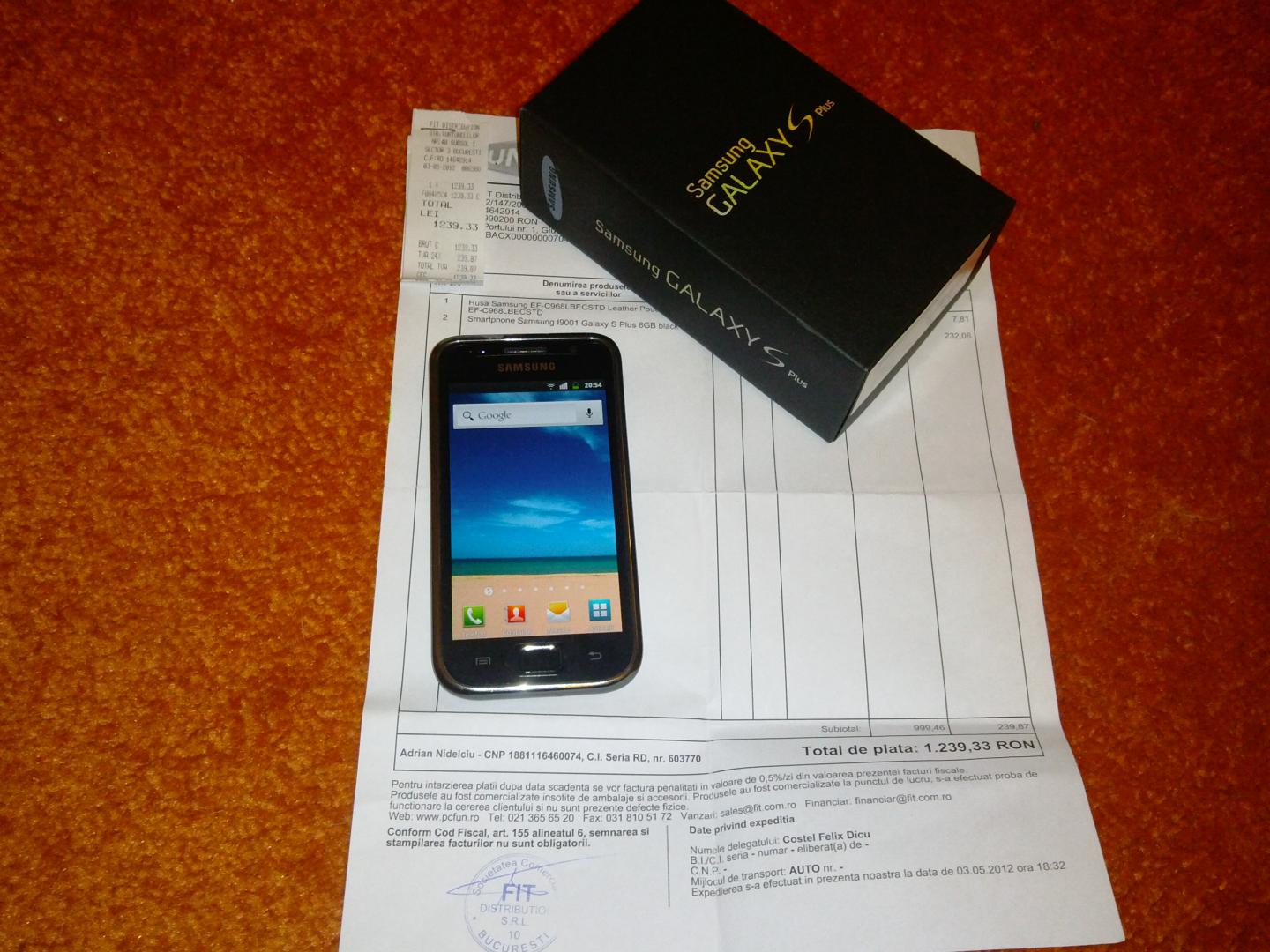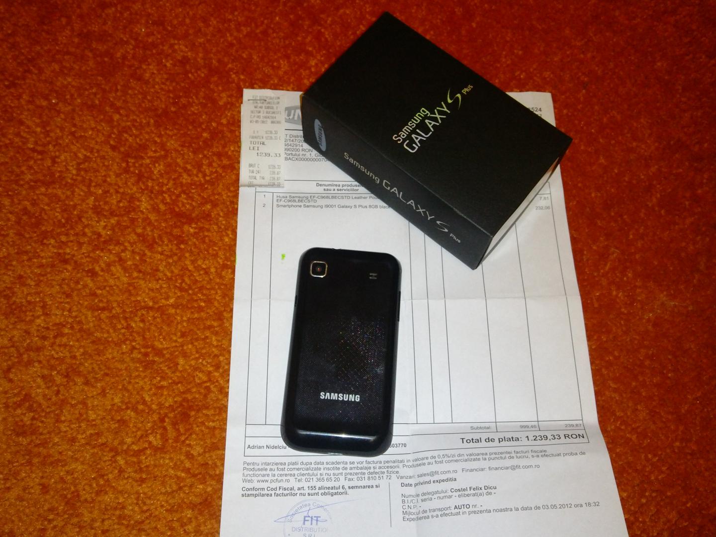 Vand Samsung Galaxy S Plus I9001, garantie pana in luna mai 2014, pachet complet, necodat,stare foarte buna, aspect 9/10, putin decojita rama in partea de sus unde e mufa de incarcare, in rest arata impecabil.