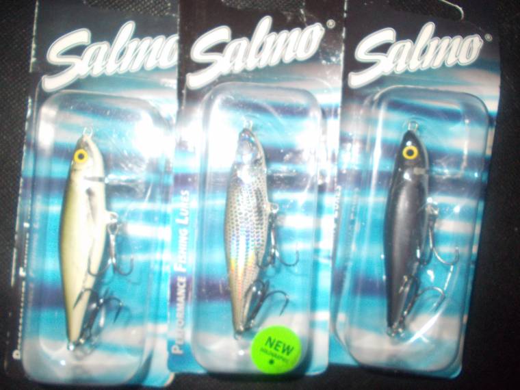 vand un pachet de voblere noi salmo thrill: 3 de 7 cm culori HBL, OB si BMB si 2 de 9 cm culori RBL si OB.