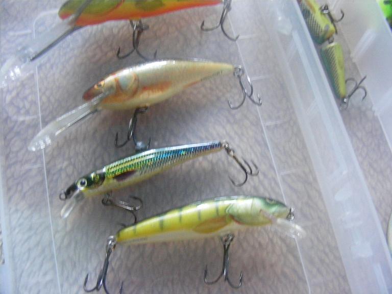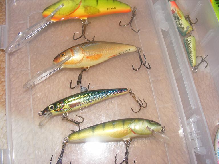 majoritatea sunt salmo floting de 7 cm , minnow, bullhead 8 cm , executor 7 cm , 1 vobler storm cu bilute inauntru , 1 dam 7 cm , restu 4 voblere no name se ofera bunus la cumpararea intregului pachet + cutiuta pt ele pret pachet 140 de lei ..in total sunt 13 voblere dintre care 6 salmo , 1 dam , 1 storm +4 no name dar la fel de prinzatoare .. tel 0747116667