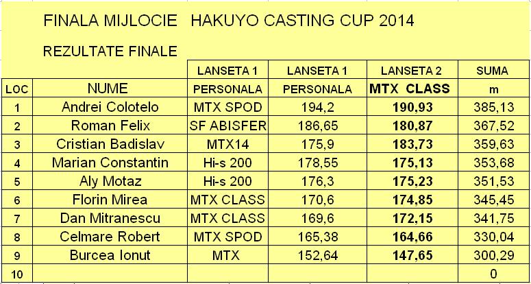 Nu am fost prezent la concurs ,am vazut doar filmarile ,mai stiu unul ori doua lucruri despre casting ,fara vintul foarte puternic din spate ,aruncarile ar fi fost mai scurte cu 10-15 m .