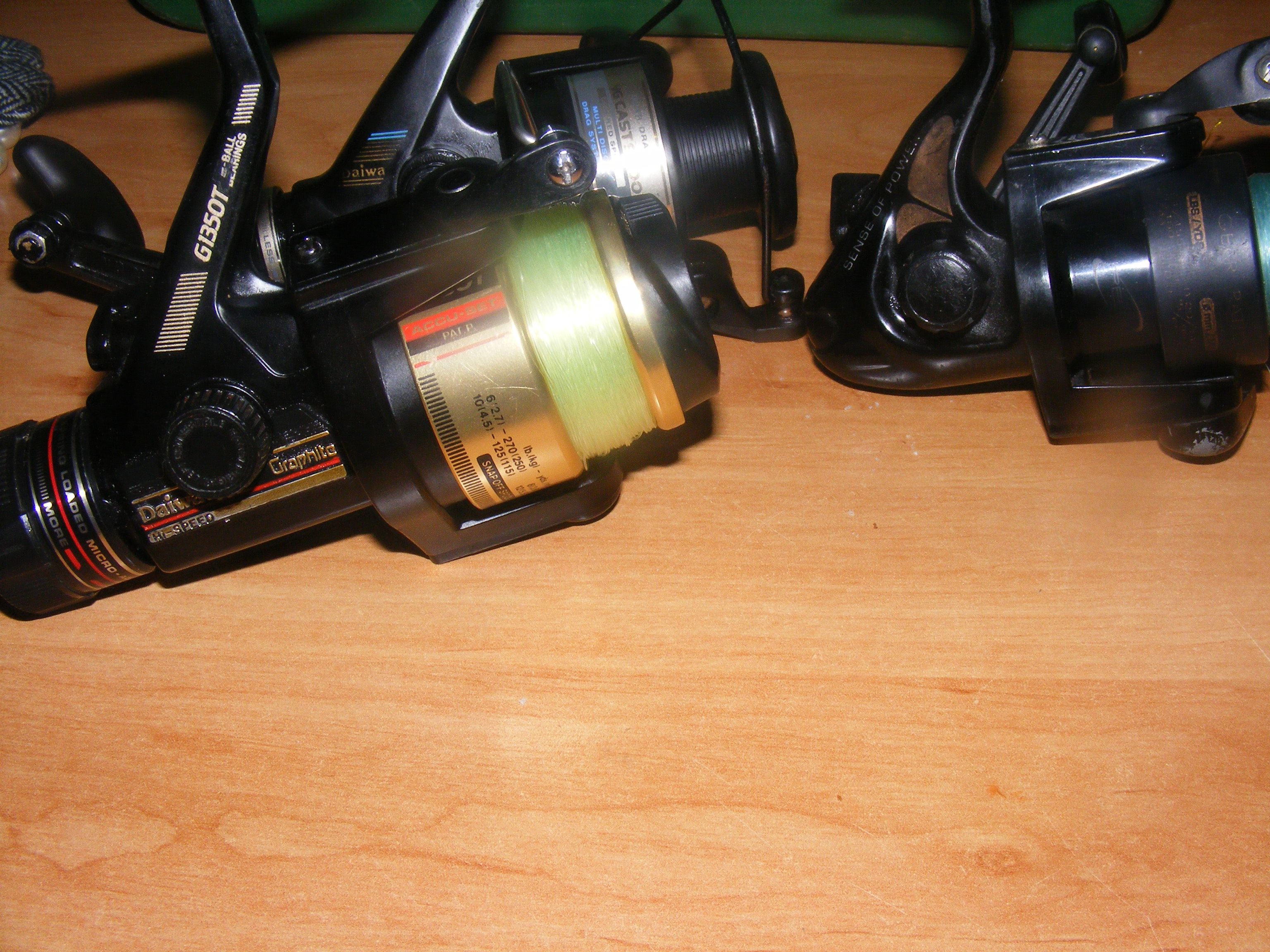 se vand toate la pachet urmatoarele mulinete toate in stare perfecta de functionare , 1daiwa g1350t 2 ball berings , 2 okuma una semper 320 3 rulmenti ..una acuador fs600 1 rulment , 1 daiwa eg1350 grafite pret pachet 120 de lei +transport posta romana tel 0747116667