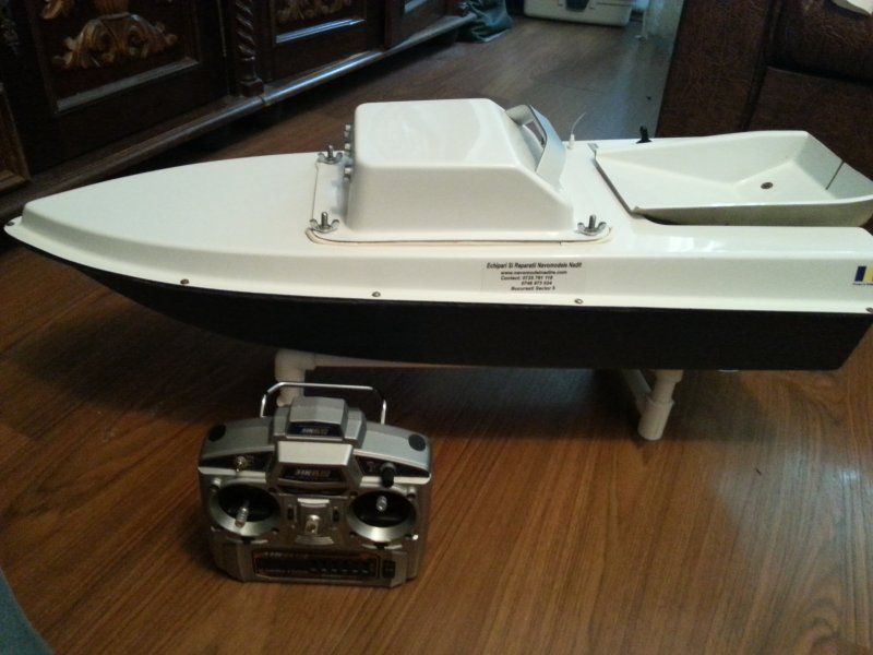 Descriere: Model cu o singura cuva ,culoare alb, coca din fibra de sticla in gelcoat , lungime 83 cm , latime 33 cm , inaltime 22 cm , greutate cu acumulator 5,4 Kg ,radicomanda 2,4 Ghz 6 canale HobbyKing , indicator nivel baterie impermeabil , regulator cu revers si viteza progresiva , preintampinare pornire accidentala , servouri de putere cu angrenaje metalice, UBEC extern 3A , lumini fata si spate actionate din statie , motorizare Robbe Power 755/40 , carma alama , arbore Robbe, un acumulator 12V 7,5A , suport barca , incarcator 220v . Distanta 300 - 500 m , in functie de conditiile atmosferice , in cazul pierderii semnalului barcuta se opreste . Datorita statiei in 2,4 GHz nu exista riscul interferentelor radio , Autonomie 6 Km , viteza de deplasare 1 m/s. Basculare progresiva , cu revenire a cuvei in pozitia initiala,protectie antibradis.PRET 1000 ron,BONUS 2 acumulatori de 12V 7,5 A si 9A.si 8 acumulatori pt.telecomanda 4 de 2100 mah si 4 de 2700 mah Sanyo, 2 incarcatoare pt.acumulatorii de 12V.barcuta a fost folosita 1 sezon si este impecabila atat optic cat si functional!.