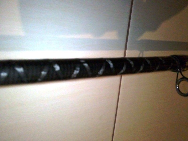 lineaeffe my way, de 4 metri, putere 5-20 de grame, 7 tronsoane, 9 inele. varful este lung, cu doua inele mici culisante, plus cel de varf. primul tronson este ranforsat, se poate vedea in foto. este in stare destul de buna, in sensul ca blancl, inelele, mandrina, manerul de pluta si cel sintetic au supravietuit cu brio testului timpului. protectiile din cauciuc din jurul matisajelor de la inele au fost putin afectate, dar nu-i bai, cred ca se putea mai bine si fara ele