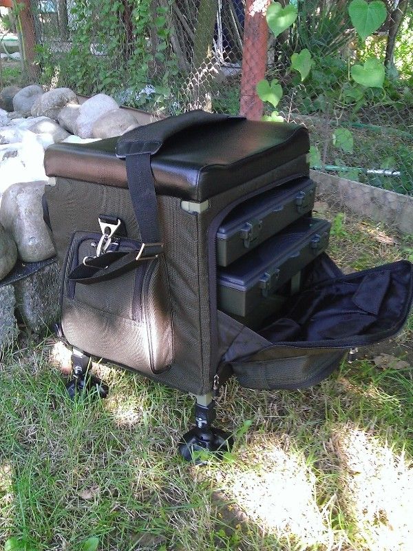 A fost folosit doar de 2 ori, dar arata ca nou. Absolut impecabil, fara nici cea mai mica urma de folosire. A fost achizitionat la finalul lunii Mai. Ideal pentru pescarii care doresc scaun+rucsac, de tip 2 in 1. Nu ocupa spatiu mult, foarte eficient mai ales in pescuitul de rau, pe maluri cu substrat moale - Constatari personale. Se vinde cu toate acesoriile, curea transport+cutii(2 buc.)+cutiute(8 buc.)
