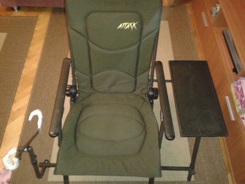 Se vinde scaunul Attack cu cadru solid, spatar rabatabil si reglabil, picioare reglabile pe inaltime prevazute cu talpici, material impermeabil, tava laterala demontabila si suport undita/lanseta tot demontabil.