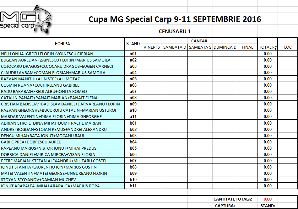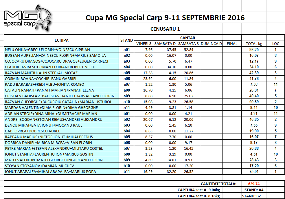 Re: DESFASURARE CUPA MG SPECIAL CARP 9-11 SEPT. LACUL CENUSA