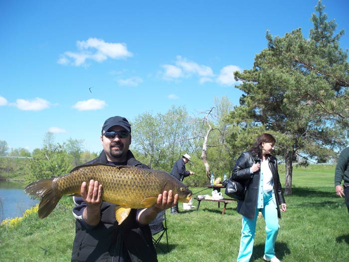 A doua zi vremea a fost frumoasa si impreuna cu nea Mitica si nea Virgil, adica o parte din conducerea Campului Romanesc din Hamilton, partenerii mei de pescuit am incercat cateva ore inainte de plecare sa vedem daca avem mai mult noroc. Nici nu a aruncat bine lanseta si prima prezentare la nea Mitica, un crap de 16 lb, dupa cateva minute altul la mine, 23 lb.