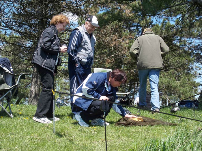Am plecat sambata dimineata din Toronto si dupa 6 ore am ajuns la motel pe o ploaie marunta, care nu ne-a impiedicat totusi sa facem un mic "antrenament" la locul faptei, fara nici o captura. A doua zi dimineata la 6 eram la locul de intalnire prestabilit unde Vali marcase deja standurile si dupa tragerea la sorti a perechilor ne-am ocupat locurile nerabdatori si plini de sperante. Am tras un loc langa standul lui Vali avandu-l ca vecin pe Radu, un alt roman din Montreal pe care l-amcunoscut anul trecut de Ziua Canadei tot aici la alt concurs. Vantul taios nu ne-a slabit toata ziua, temperaturile scazute din ultimele 3 zile, pana la 6 grade dimineata, influentand numarul capturilor care au fost daca nu ma insel doar 3 la 19 participanti. Dupa incheierea concursului ne-am mutat cu totii la motel unde s-a tinut partea a doua, adica gratarul si suetele. Vali ne-a delectat cu niste mititei gustosi, udati cu bere si vin si ne-am incins la discutii pana tarziu.