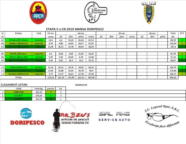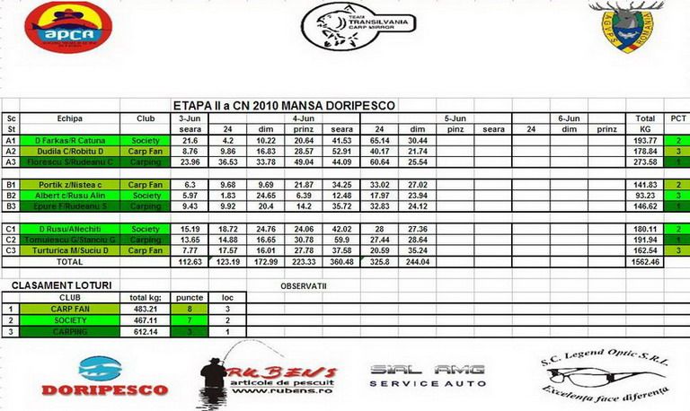 Diferenta a fost doar la kg. Carping cu aprox. 80 kg mai mult decat Cluj iar acestia cu aprox. 8kg mai mult decat Oradea.