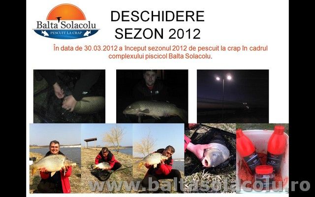 Incepand cu data de 30 martie 2012 se va deschide noul sezon de pescuit la balta Solacolu. pentru cazare sunt disponibile cele 2 case mari, iar din data de 6 aprilie vor fii disponibile inca 3 case mici cu o singura camera, baie si bucatarie. pentru rezervari vizitati www.baltasolacolu.ro unde se po...