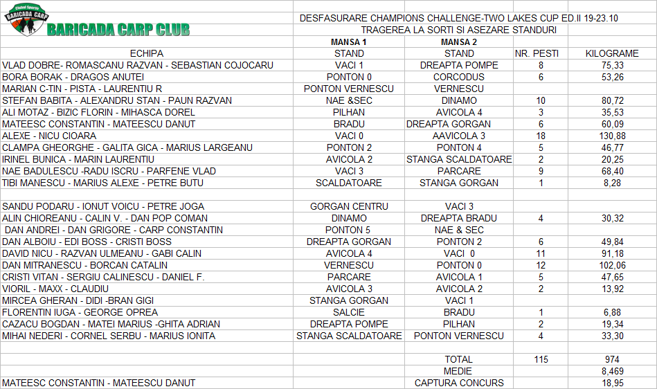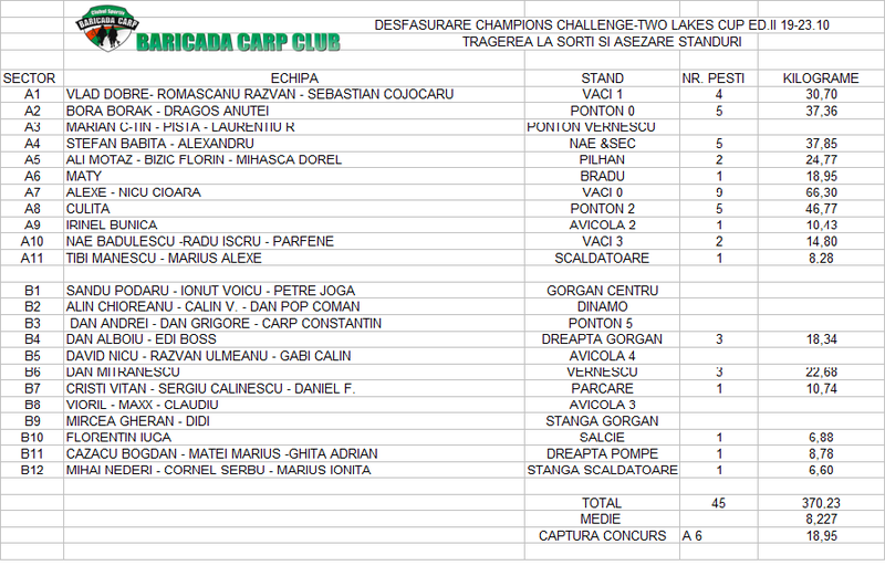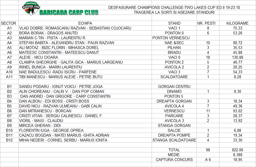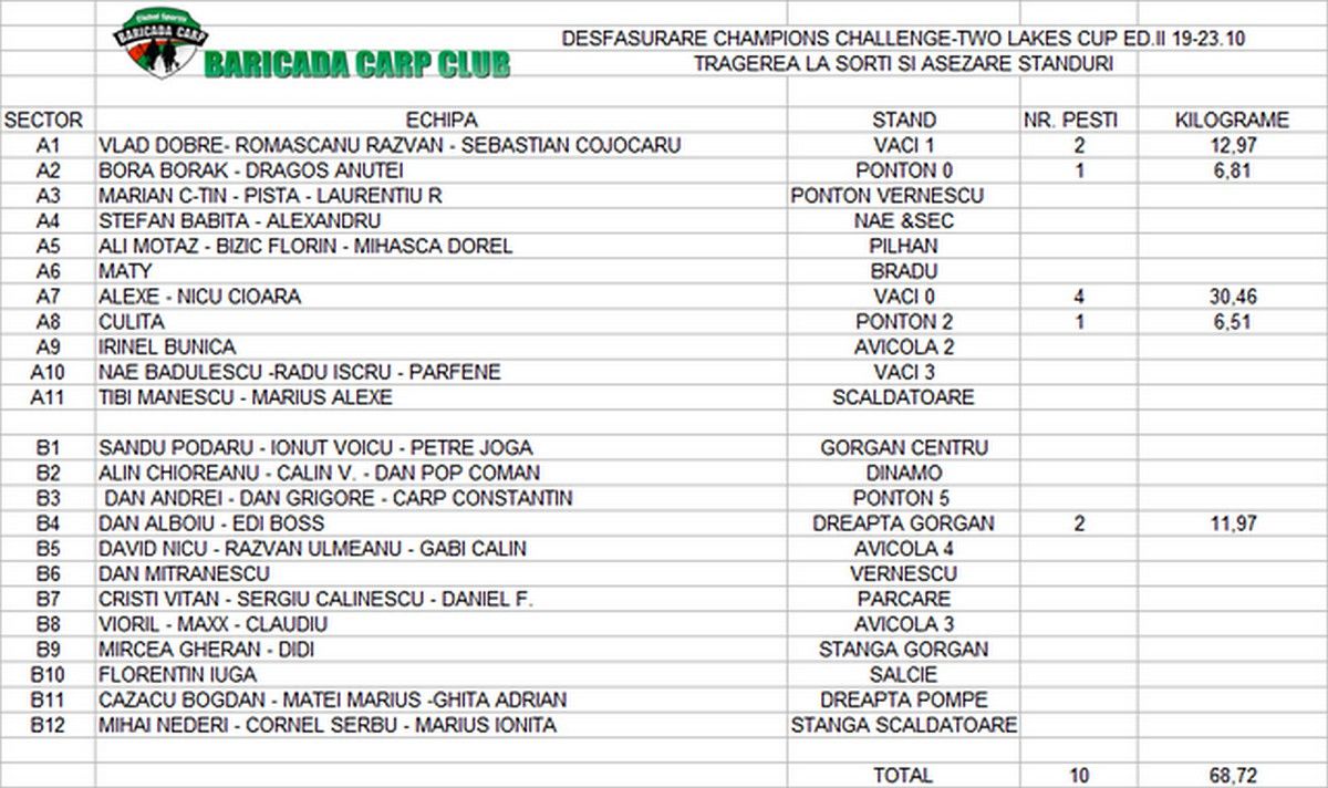 1.Vor fi 2 sectoare valorice. Fiecare echipa va pescui 44 de ore pe fiecare sector.Dupa 44 de ore se va efectua o noua tragere la sorti.