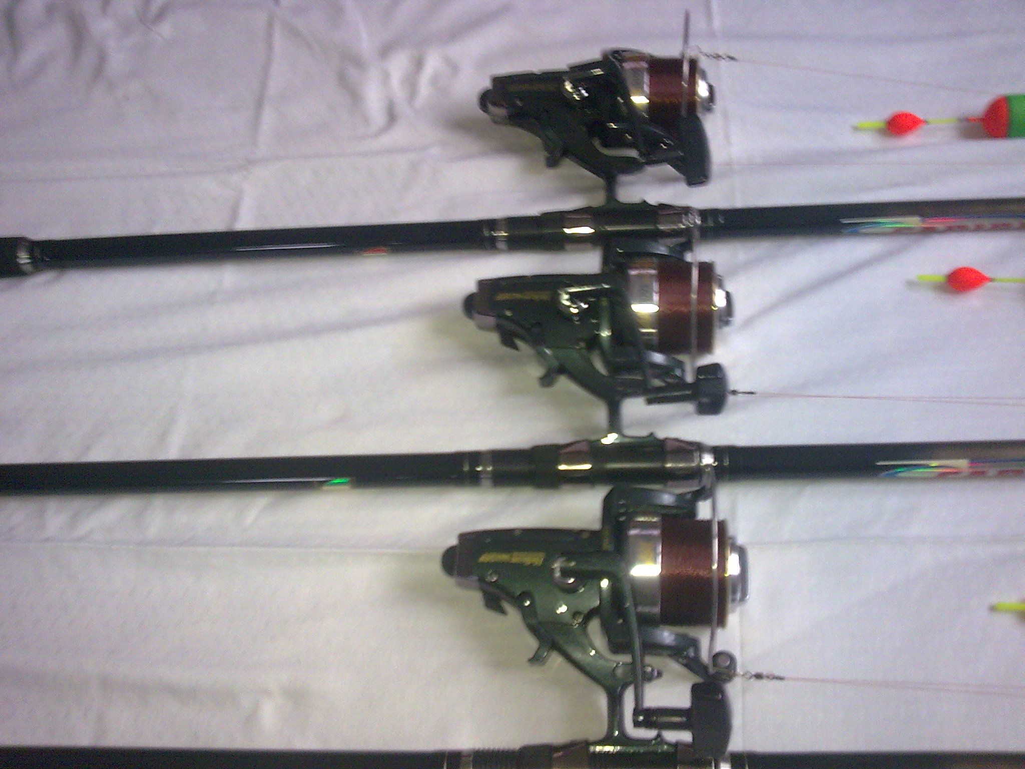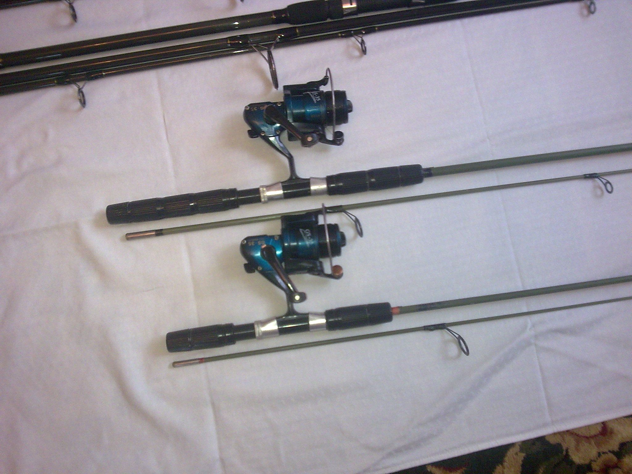 7. Germina lansete fibra plina ,inele sic, stare ireprosabila, una de 2,10 m. si una de 1,80 m. echipate cu mulinete GS 35, la 100 lei/set.