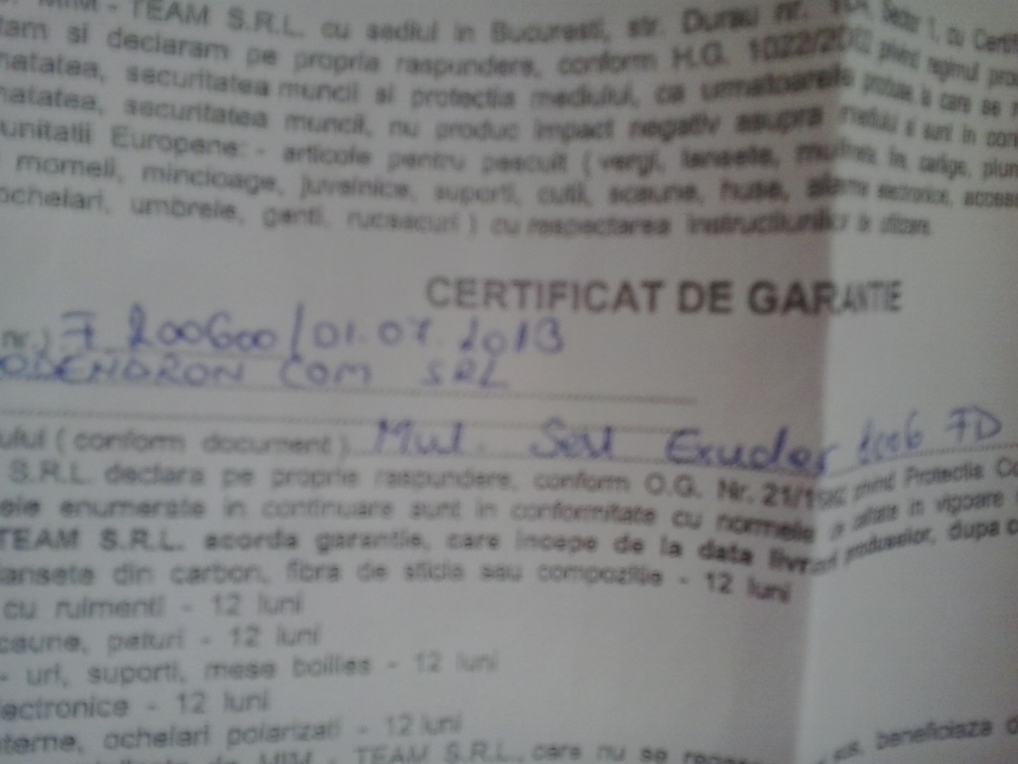 sert exuder 8006fd cu garantie cumparate in 2013 in cuti