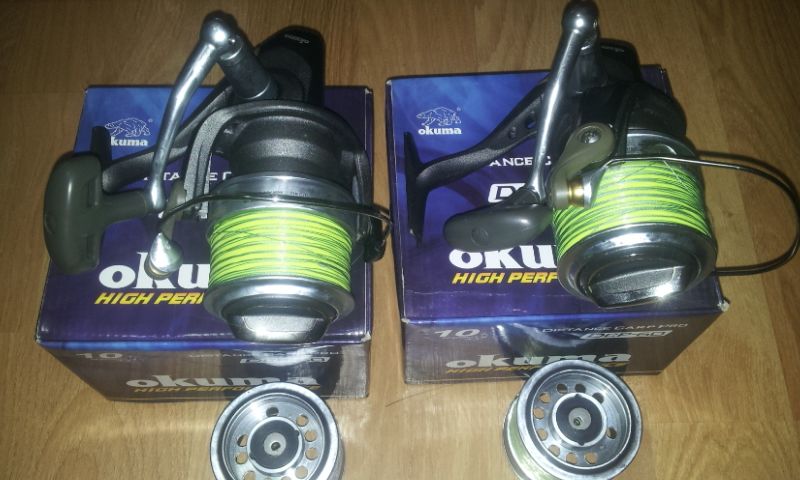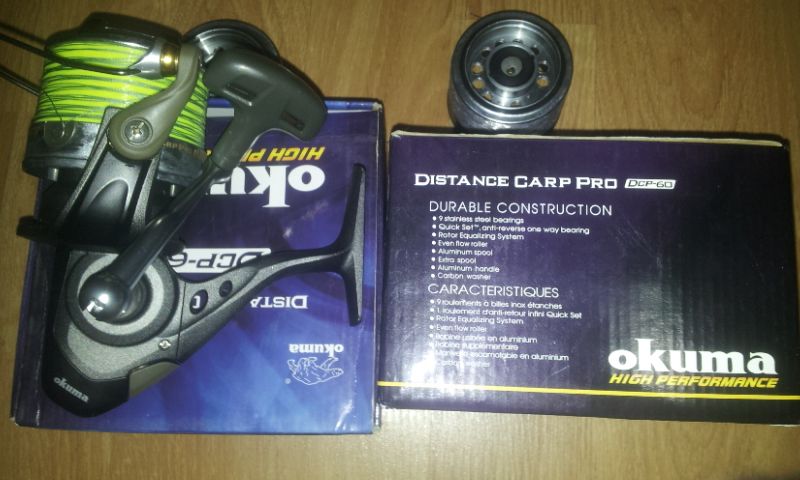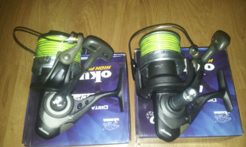 Se vand 2 okuma distance carp 60. Mulinetele sunt cumparate in luna martie anul acesta si au cateva partide, practic sunt ca si noi. Vin insotite de tamburii de rezerva tot din aluminiu ca si principalii. Pretul este de 500 lei amandoua si nu este negociabil. Poze pun maine. Doar pentru cei din buc. Sau if. 0766258066
