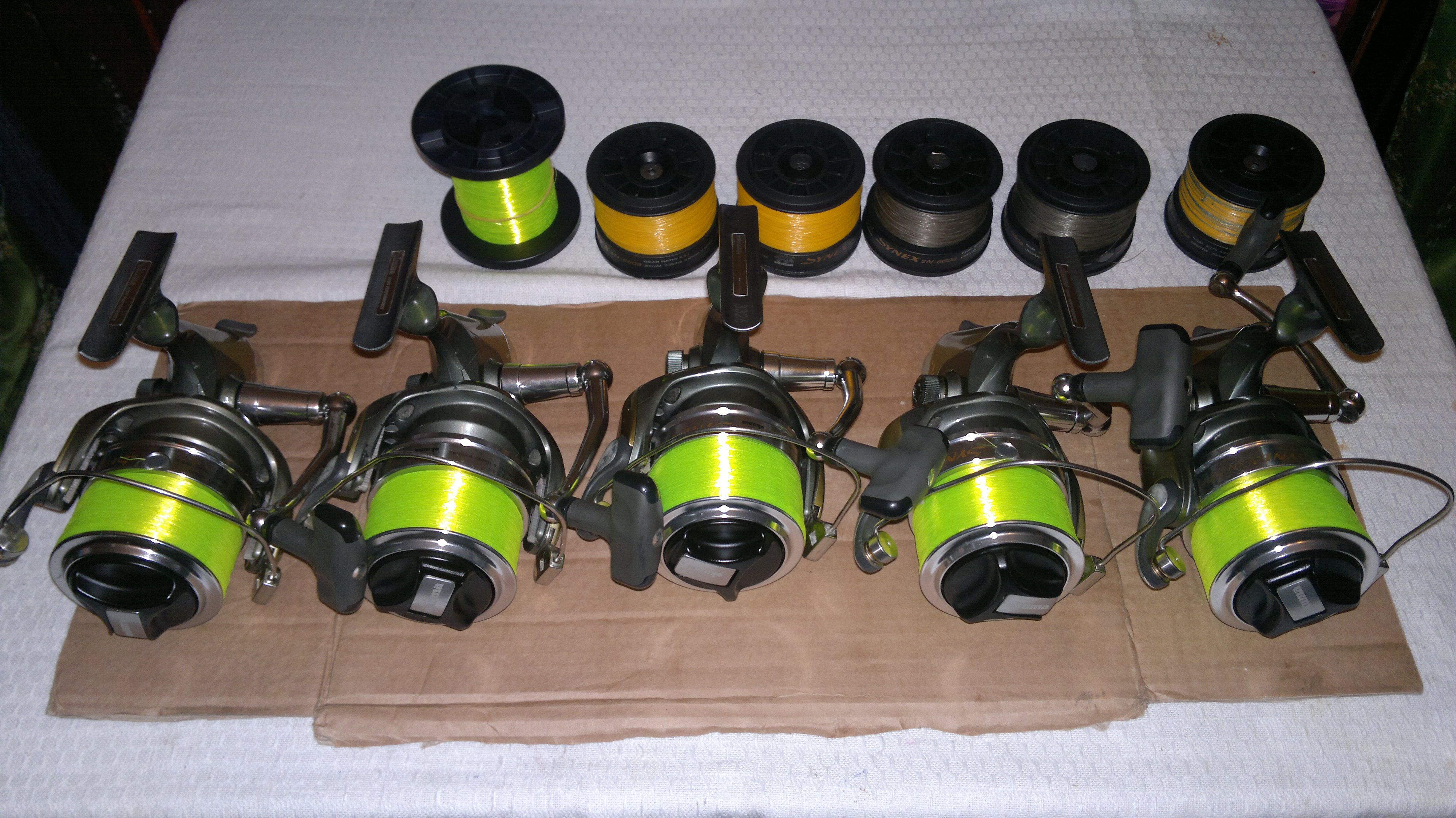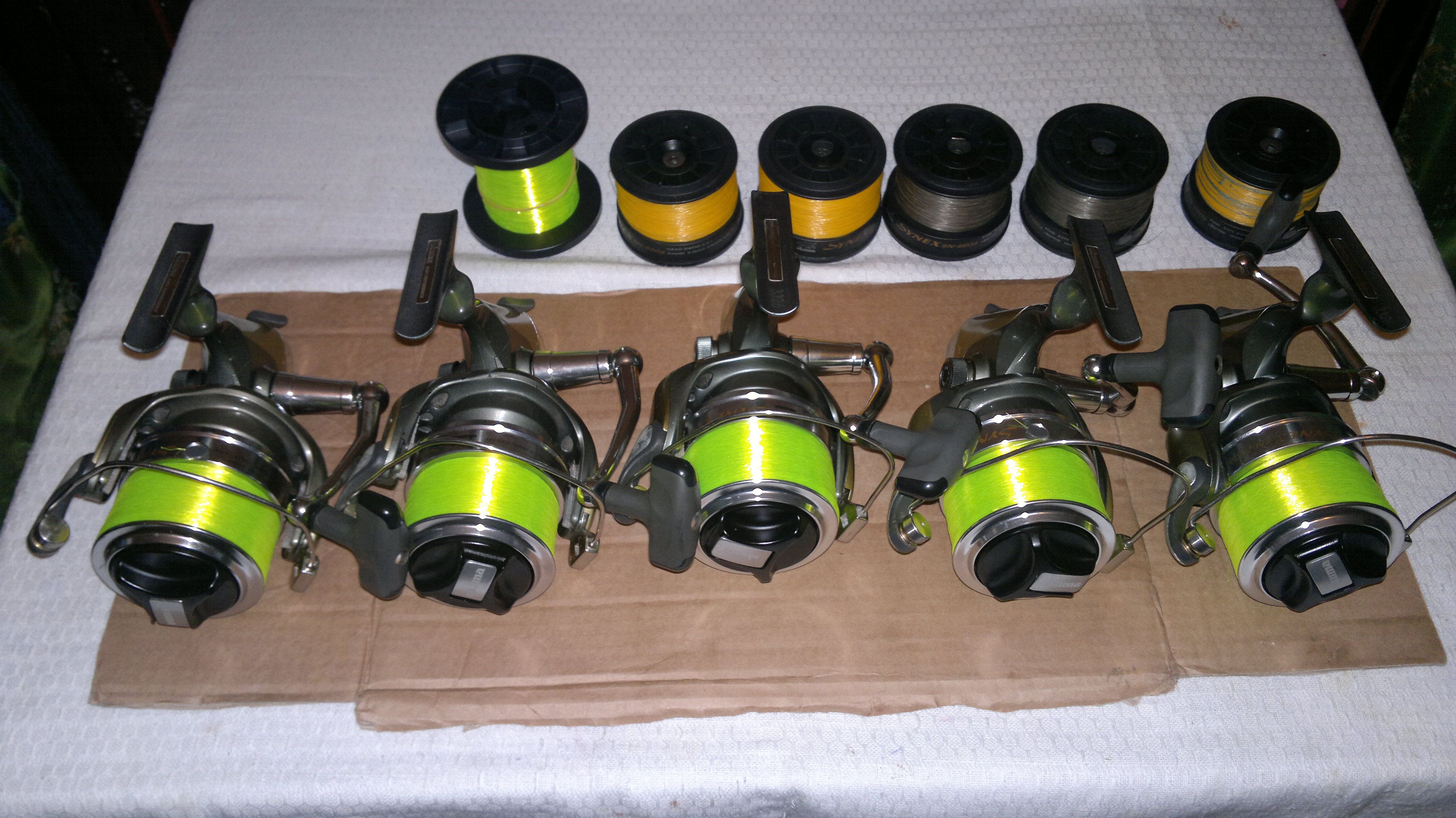 Vand 5 mulinete okuma synex de 6000 incarcate cu fir nou p-line de 0,25 fluo cate 300m, tamburi de rezerva grafit.Pret 250 lei buc. sau 1150 toate. 0767 816599.