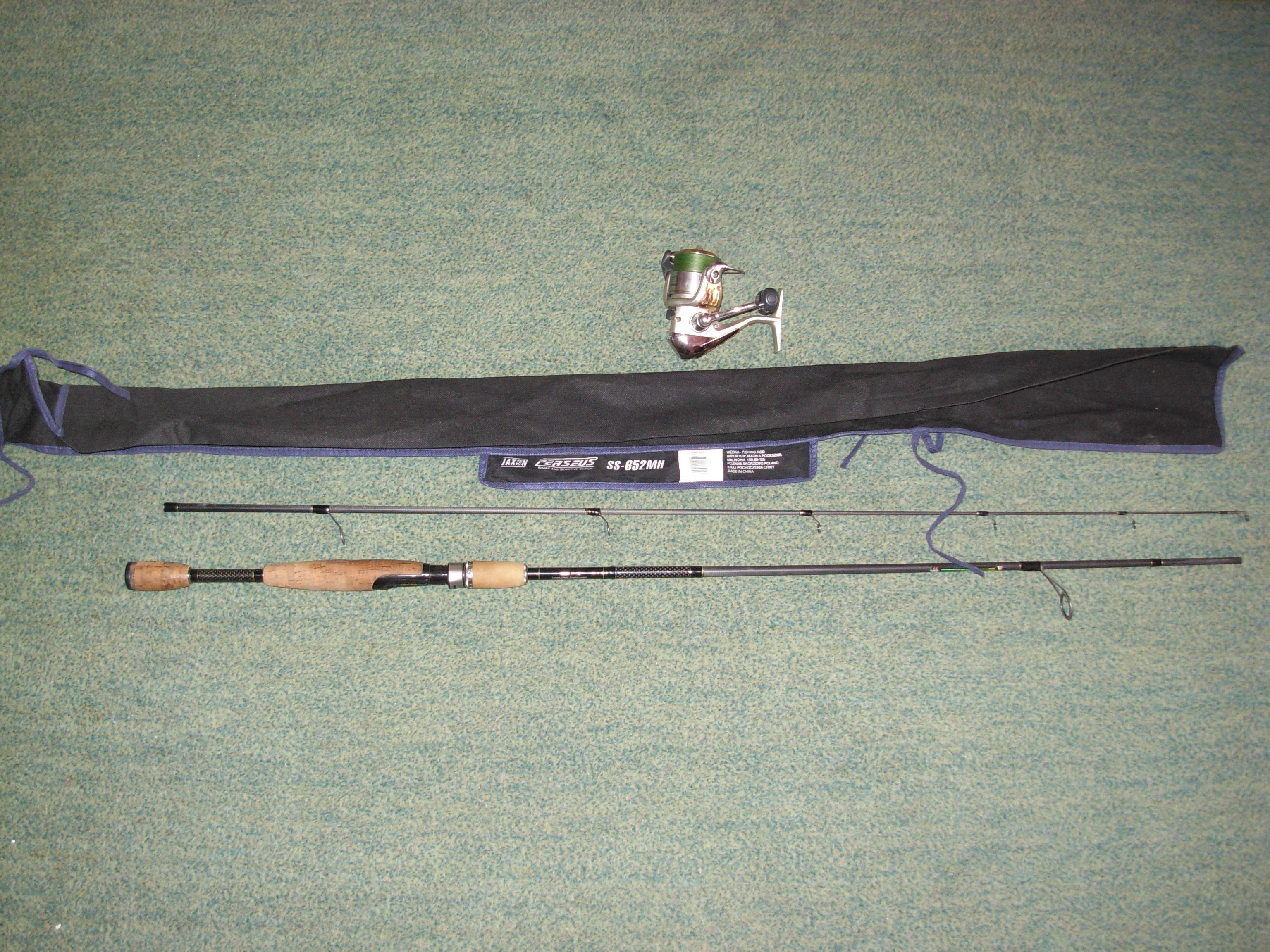 bat spining Jaxon Perseus -652MH 2.10m 1/4-1oz + mulineta ShimanoEXAGE 2500 FA cu 100 m fir textil + tambur de rezerva metal .Pret 320 ron pachet. Folosit cateva iesiri. tel 0746/393157