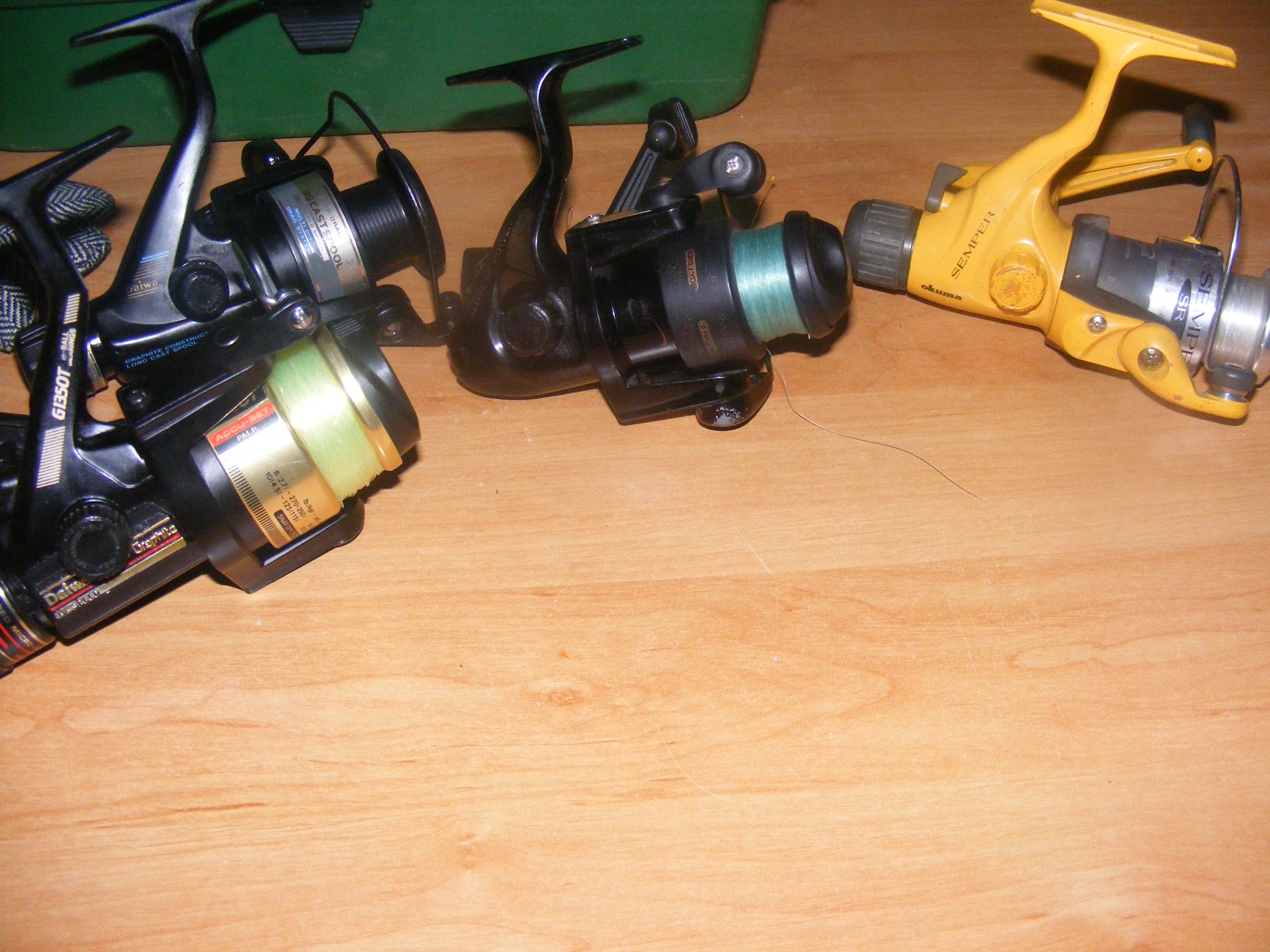 se vand toate la pachet urmatoarele mulinete toate in stare perfecta de functionare , 1daiwa g1350t 2 ball berings , 2 okuma una semper 320 3 rulmenti ..una acuador fs600 1 rulment , 1 daiwa eg1350 grafite pret pachet 120 de lei +transport posta romana tel 0747116667
