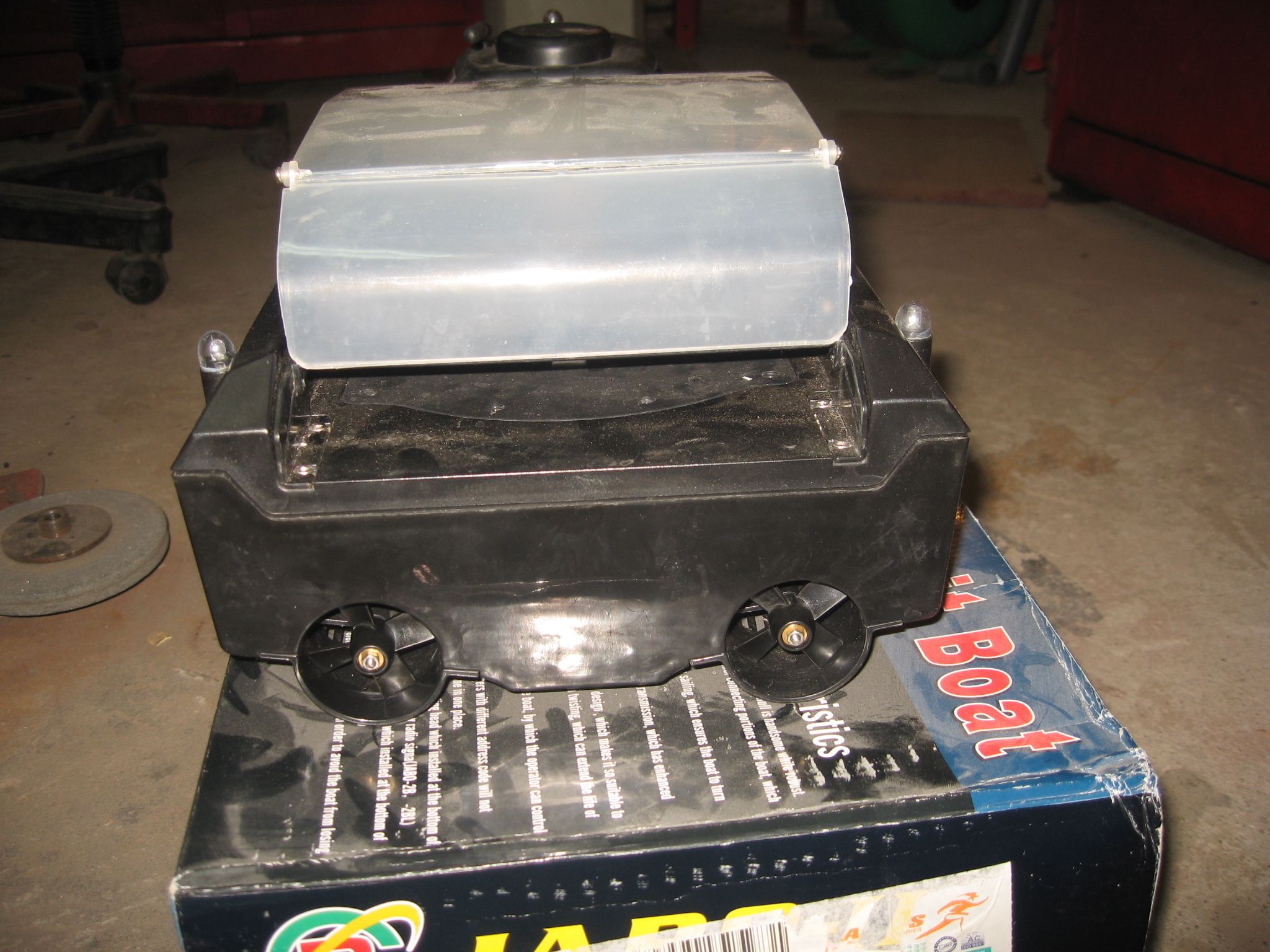Am fost nefericutul posesor al acestui navomodel Jabo 2 (in anunt scrie jambo 2, cred ca nu intamplator). Raza de actiune a telecomenzii nu depaseste 100 m. Este propulsata de doua motoare din care se directioneaza stg-dr fiind astfel foarte greu de controlat directia de inaintare. Singurul plus este sistemul de basculare al nadei/monturii, evident daca este in raza telecomenzii.