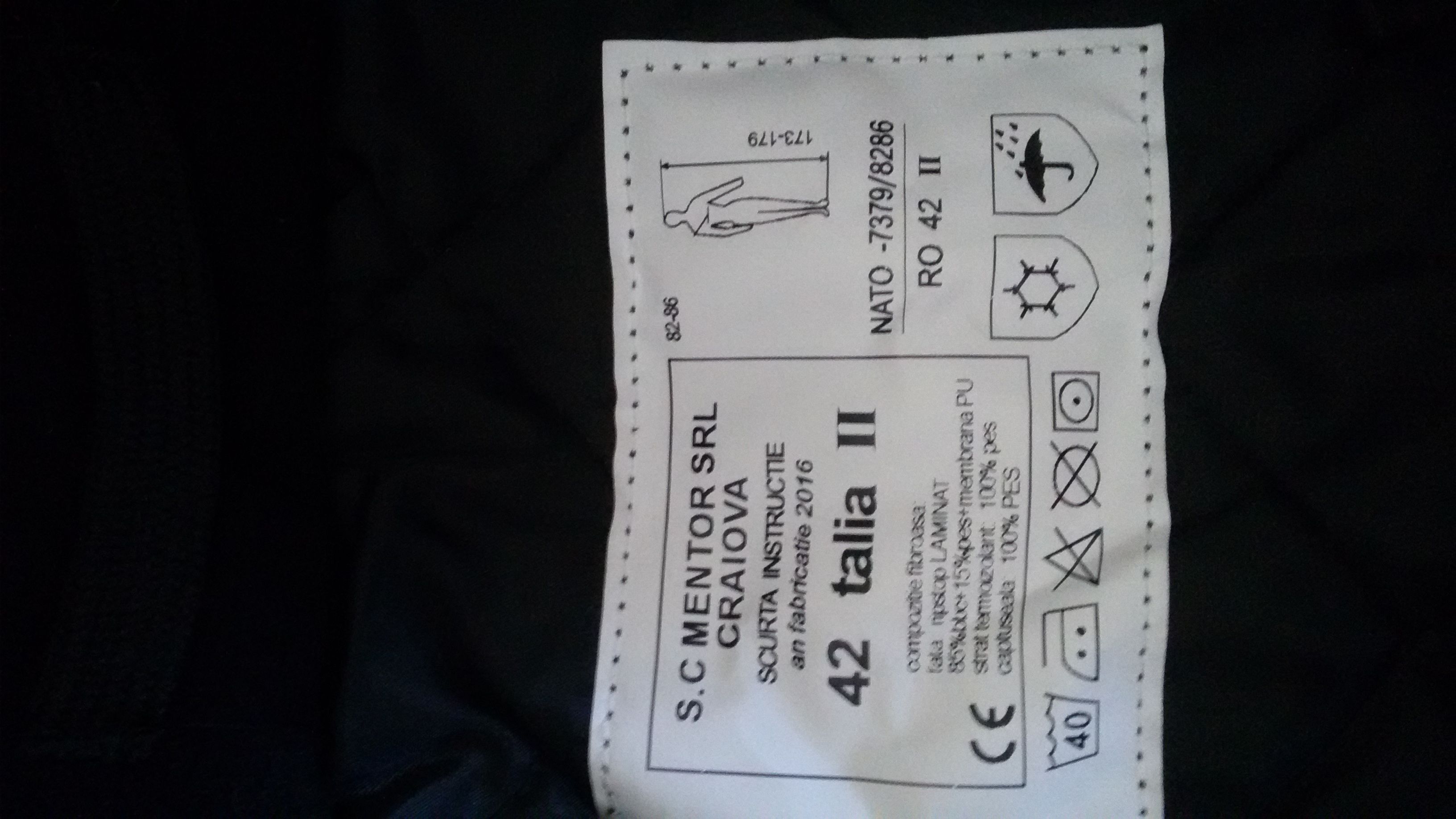 Este impermeabila și călduroasă, este prevăzută cu mai multe buzunare la exterior cât și la interior, inchiderea se face cu fermoar și suplimentar cu arici pentru a împiedica pătrunderea apei .
