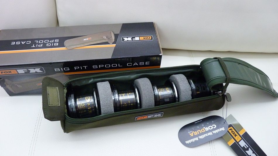 La achizitionarea setului de mulinete primiti cadou o husa pentru cei patru tamburi de rezerva FOX FX Big Pit Spool Case !