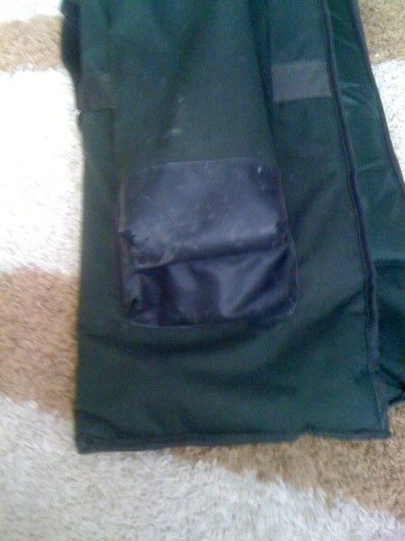 Husa este folosita 2 sezoane, nu prezinta rupturi , fermoarele sunt in regula, singurul defect ar fi ca intartitura buzunarului pt minciog sau picheti s-a tocit, fiind din vinilin.