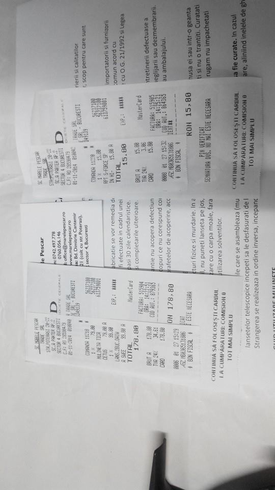 Toate acestea au fost cumparate in data de 1-11-2014 de la un magazin de profil din Bucuresti.