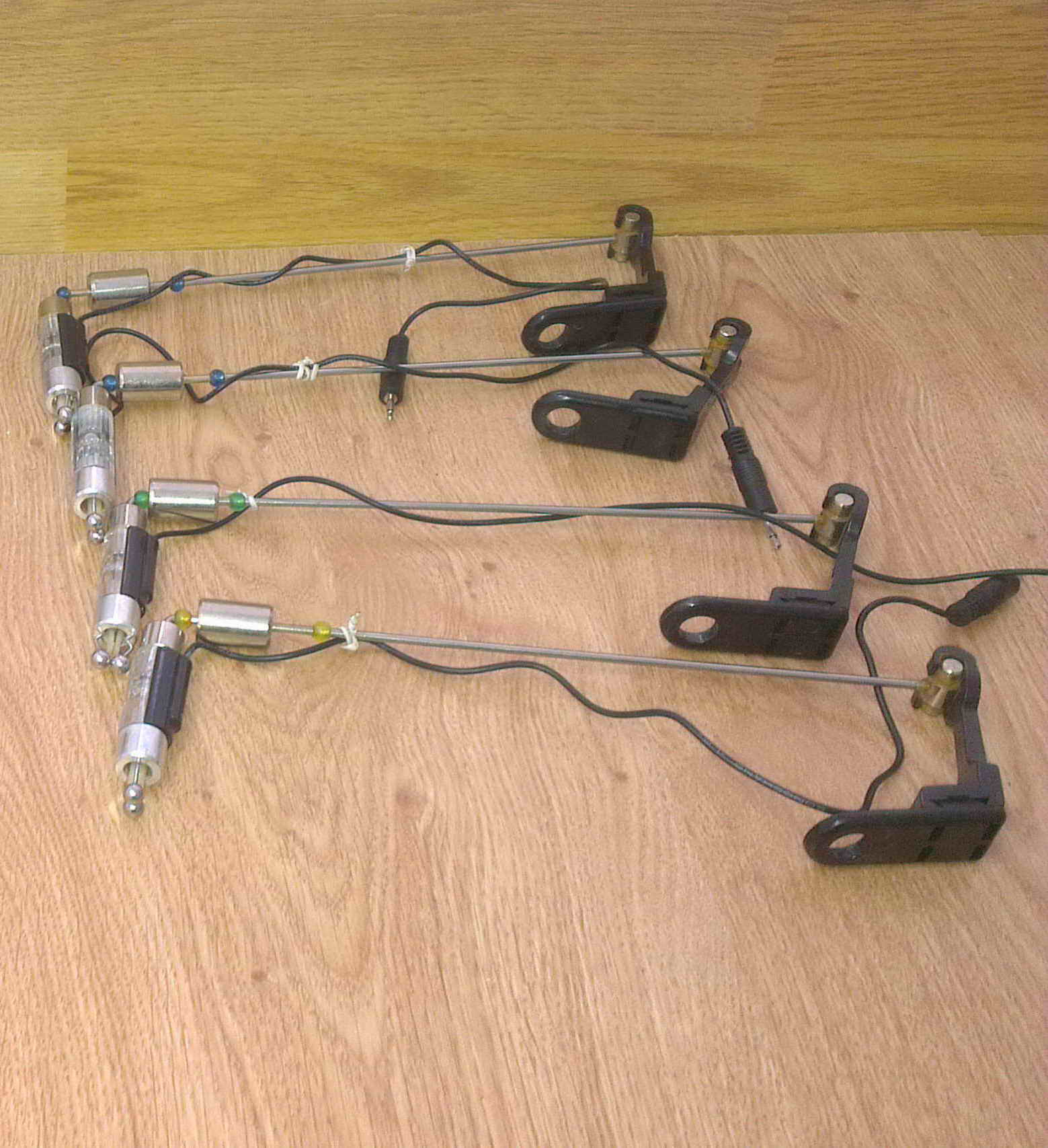 1.Doua seturi de avertizori cu statie perfect functionali folositi 3 partide de pescuit x 8 ore. Fiecare set este compus din 4 avertizori + 1 statie.