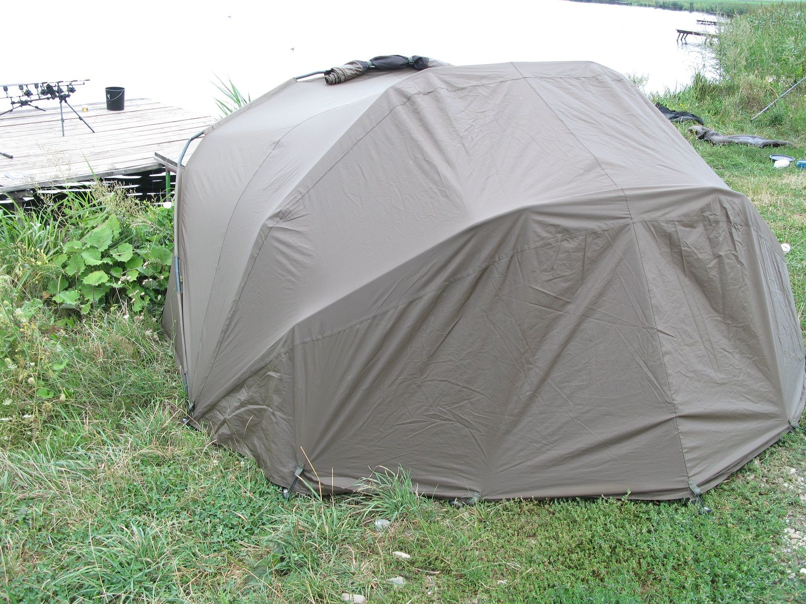 Geanta din material impermeabil,de calitate,culoare verde,pentru accesorii de crap,de dimensiuni generoase si buzunare multiple.