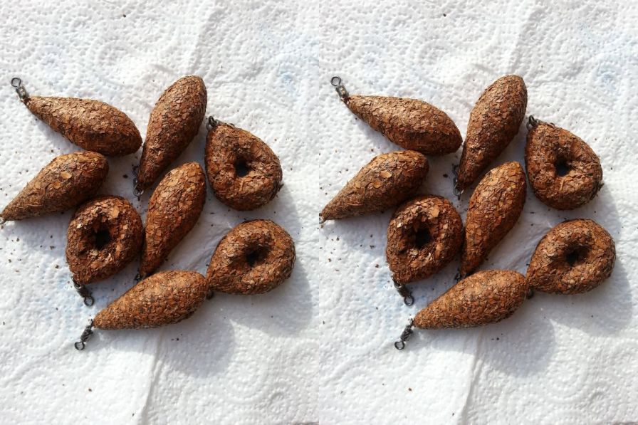 * Plumbi plastifiati, apoi "imbracati" in frunza uscata care arata in apa ca un mic smoc de plaur sau trestie scufundata, fiind practic camuflati natural 100%.